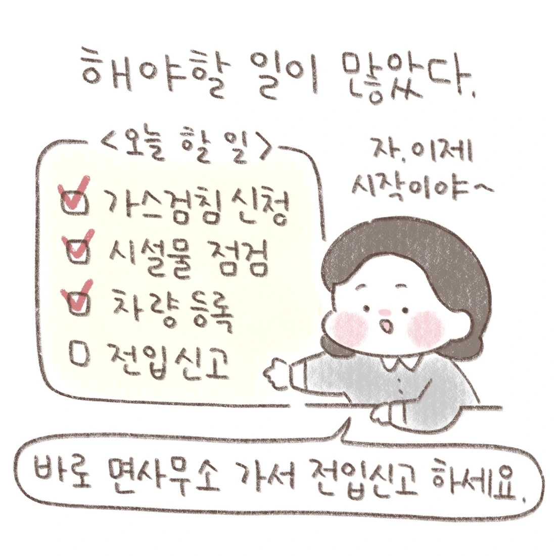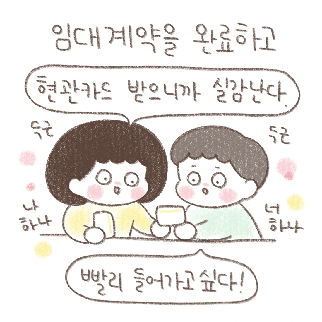 그때마다 서로 독려하면서 무사히 집 계약, 전입신고, 가스 검침 신청,