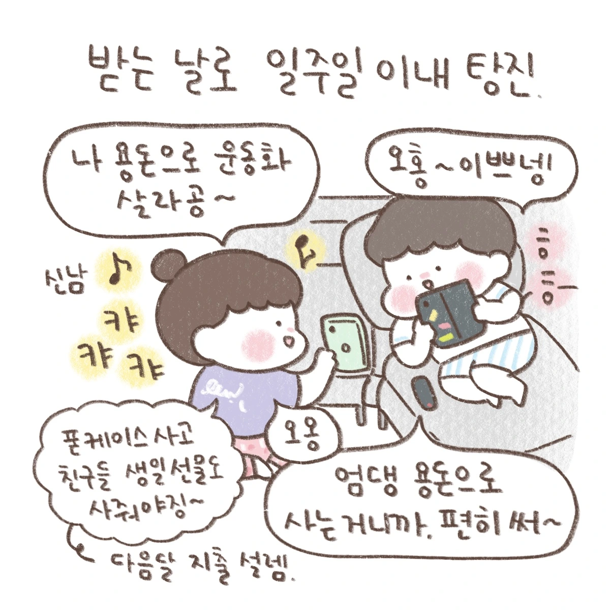 서로 매 달 용돈을 받아서 쓰기로 결정했다.