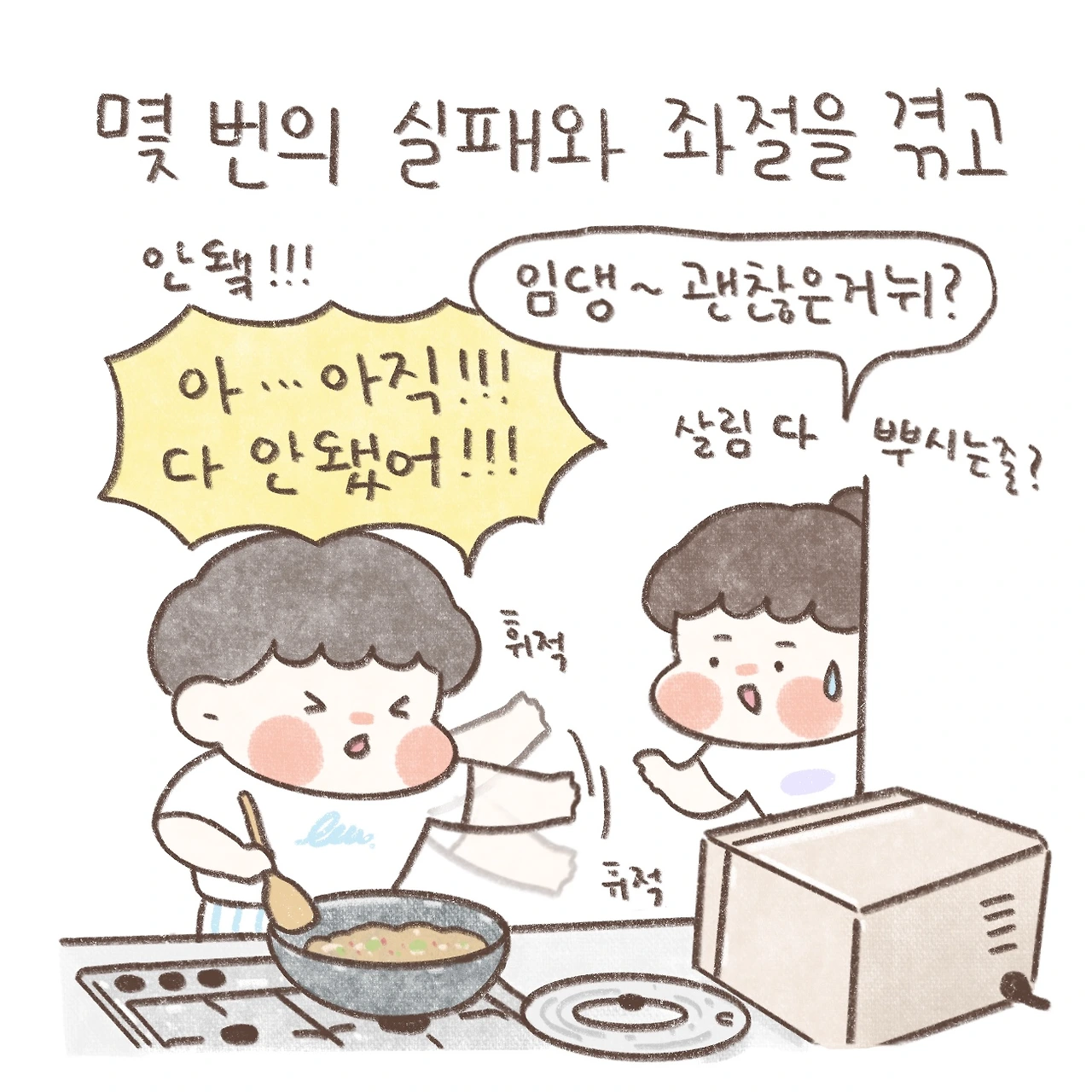부엌에서 나는 우당탕탕 소리도 줄어드는 중