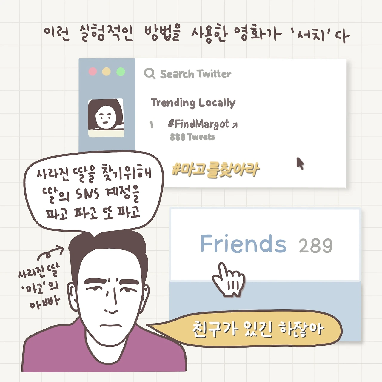 서치의 첫 장면은 윈도우의 배경화면으로 시작됐다.