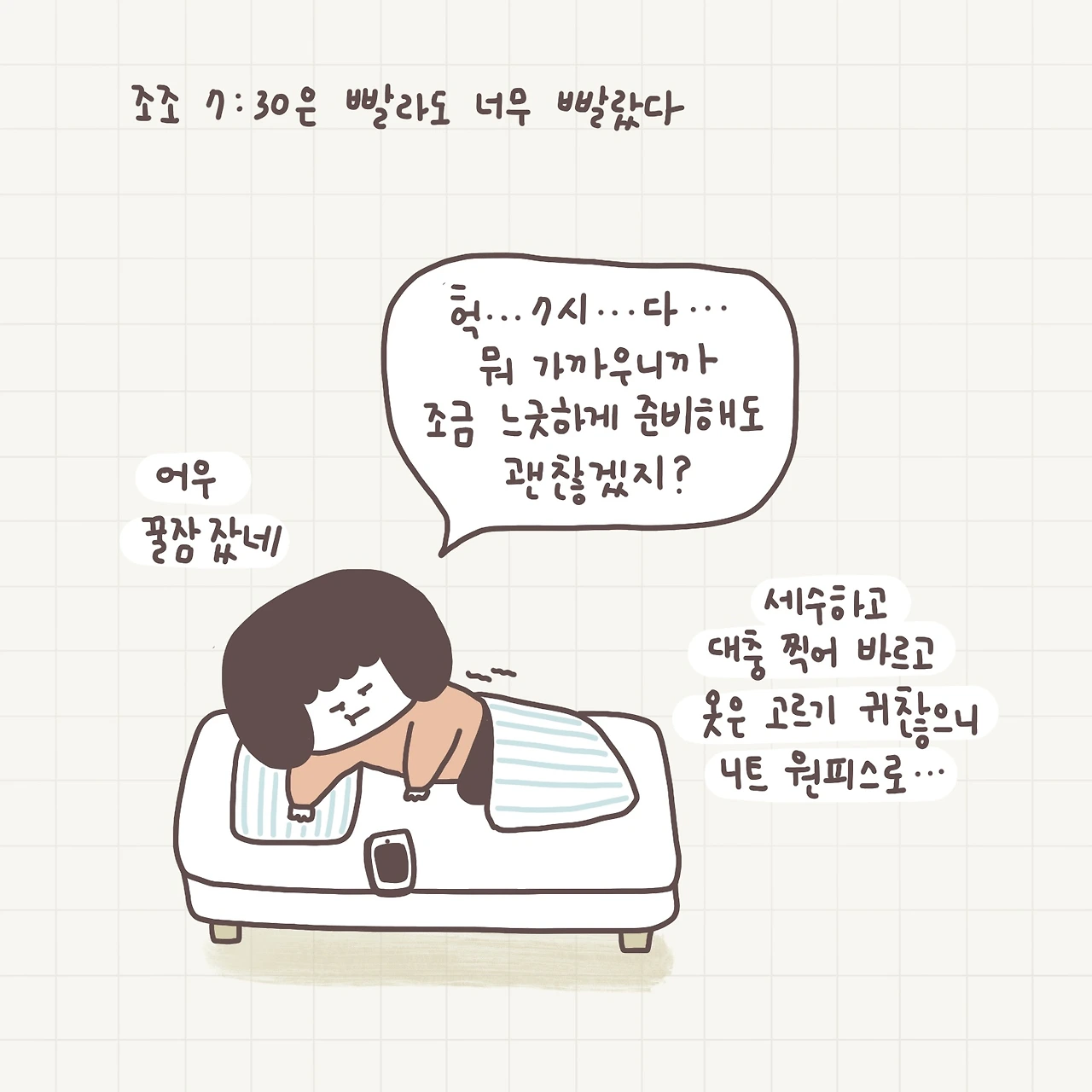 침대에 몸을 뉘였다