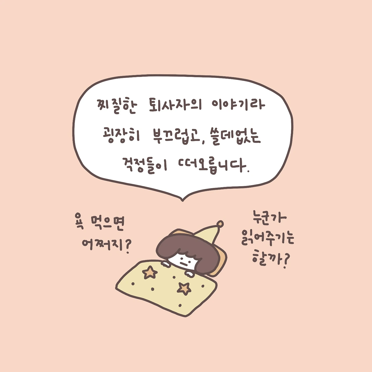 한 번쯤 고민하고 걱정할 수 있는 이야기를 슬며시 내밀어봅니다.