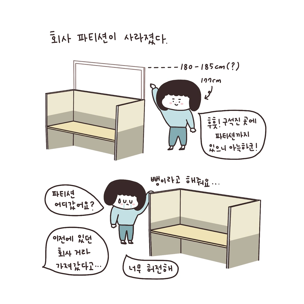파티션이 사라졌다. 더불어 의욕도 사라졌다.