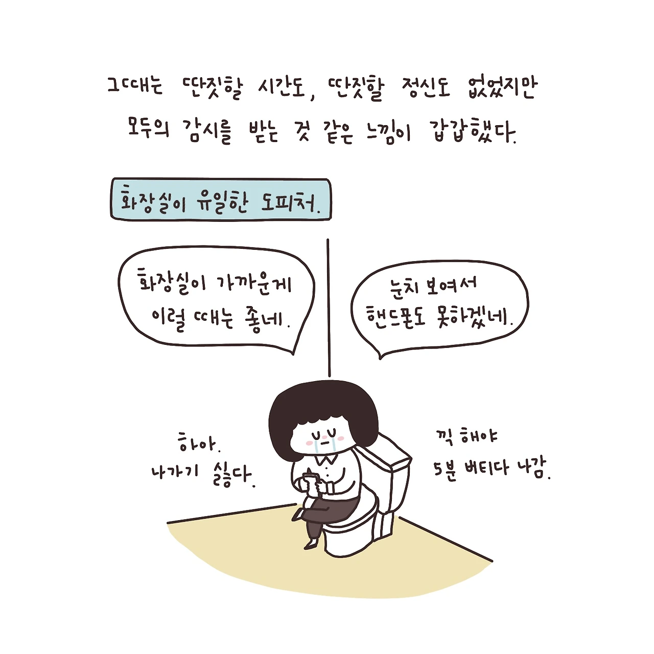 잠깐 핸드폰 보는 것조차 화장실에서만