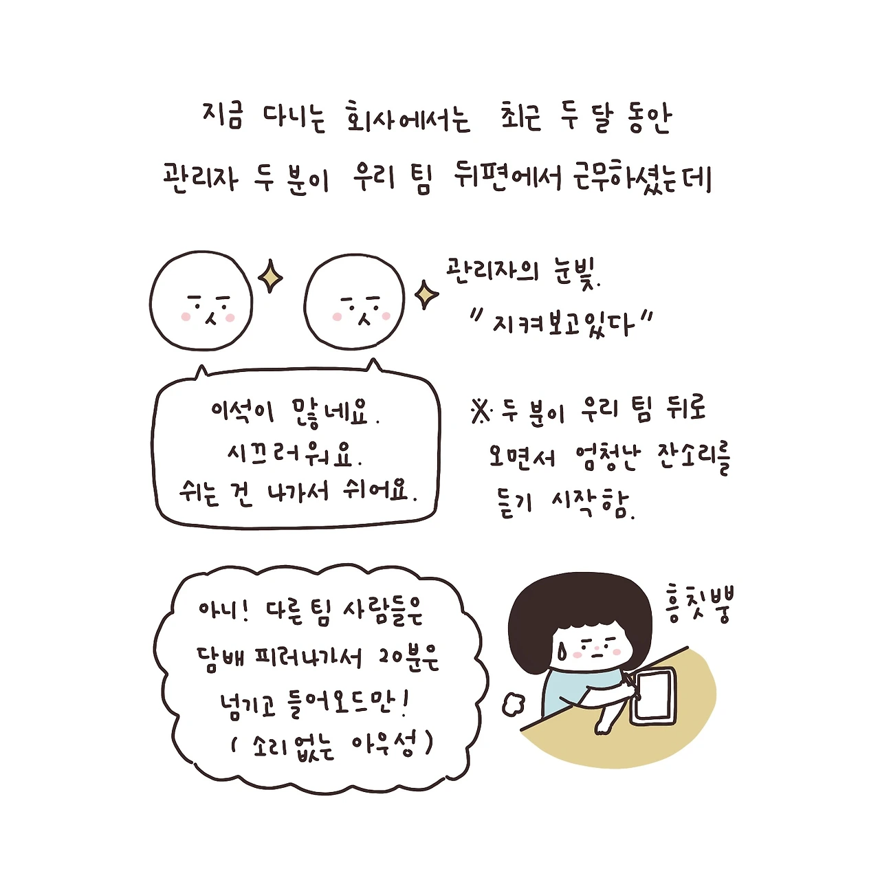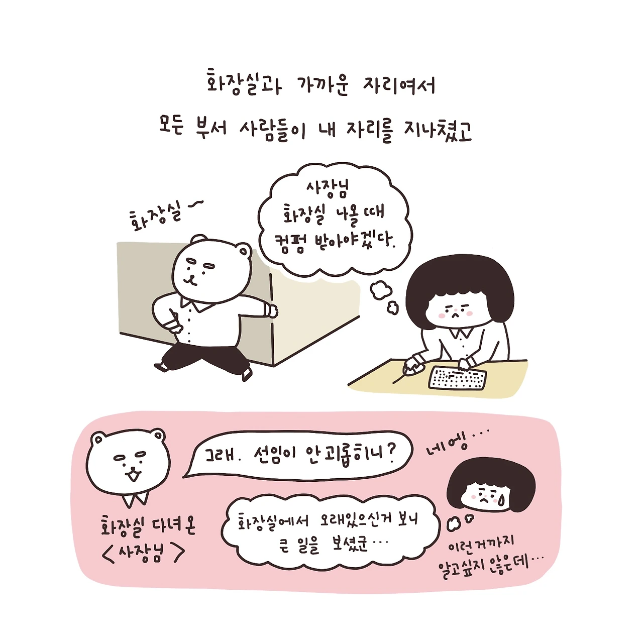 부장님 역시 화장실 가시면서 한마디 하시고,