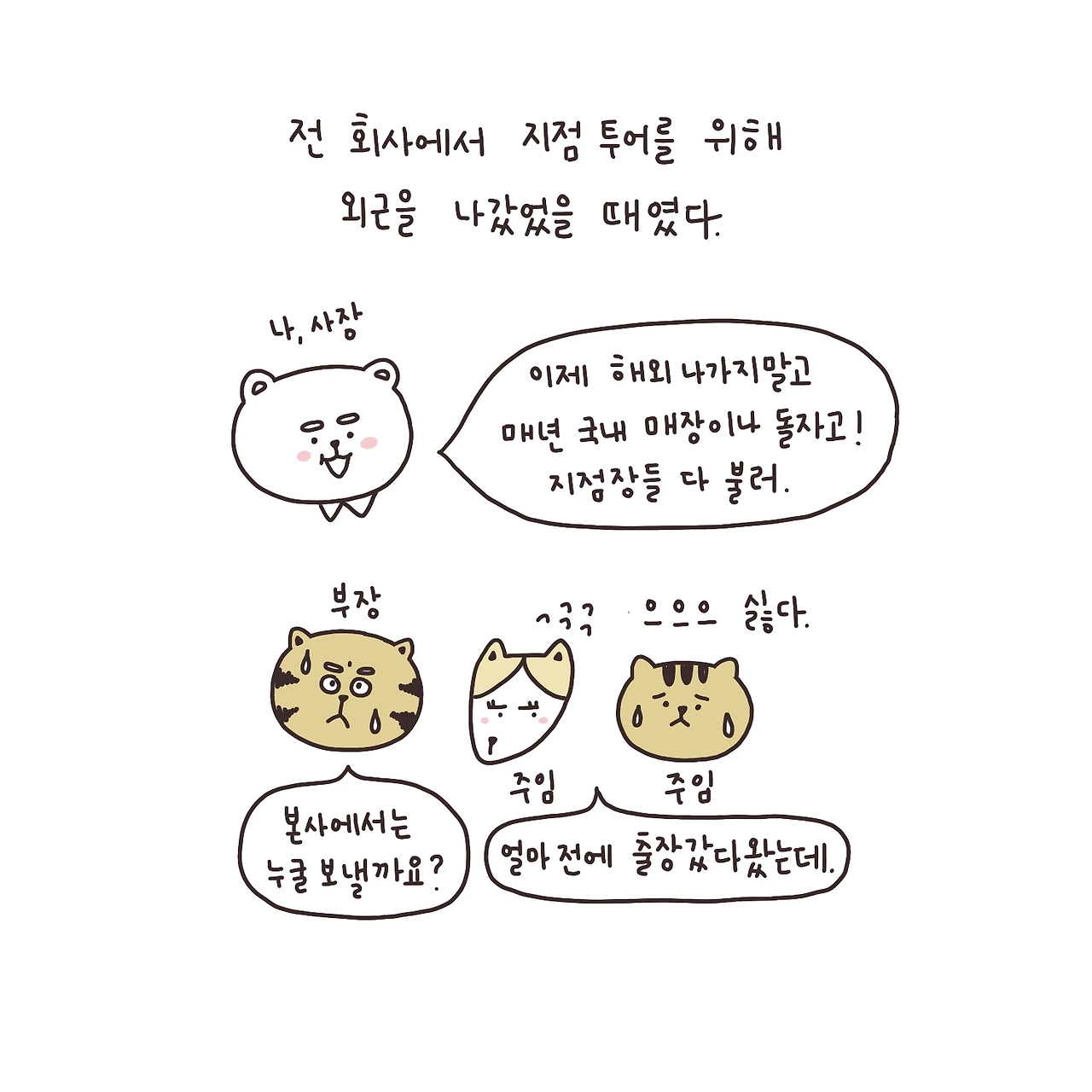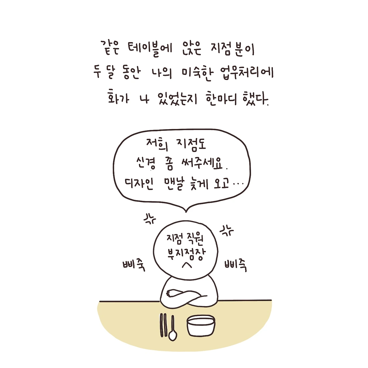 밖에서는 지점 사람에게 까이고 눈치 보고.