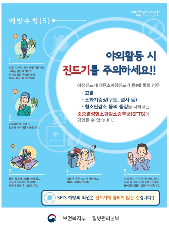 이 진드기가 위험한 이유는 작은소참진드기가 옮기는 SFTS(중증 열성 혈소판 감소증) 바이러스 때문이다. 감염자는 혈소판 10만 미만, 백혈구 4천 미만의 CBC 확인과 고열을 동반하며 심각한 구토 설사 근육통 등을 호소하다 사망에 이른다.