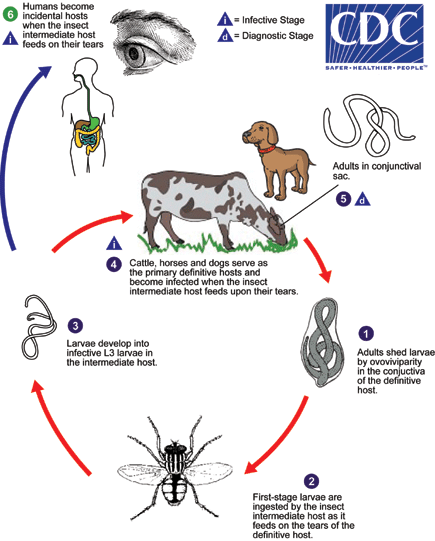 안충은 초파리가 옮기는 기생충인데 눈물을 먹고 산다. 아메리카와 아프리카, 오세아니아 대륙에는 아예 없고 아시아 지역을 주 무대로 발생한다. 학계 발표는 1910년 중국에서 서양 학자에 의해 첫 보고되었다. 그래서인지 정식 이름이 "동양안충(Oriental eye worm)"이다. 요새 들어, 꾸준히 유럽지역에 이 벌레가 전파되고 있다. 오죽하면 2017년 영국 수의학계는 이 벌레로 난리가 났었다. 그 당시 신문을 보면 '강아지들의 눈을 멀게 하는 동양안충이 영국에 퍼지고 있다. (Oriental eye worm’ infection that makes dogs blind spreading to UK)'라는 기사가 검색된다. 사람에서도 걸릴 수 있기 때문에 공중보건상 민감한 점도 있다. 하지만 절대적으로 동물에서 많이 발생한다. 동물은 눈꺼풀이 하나 더 있어 안충이 그곳에 숨어 살기 쉽기 때문이다.