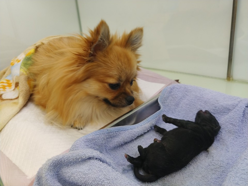 마취가 덜 깨었는지 제 새끼를 핥아줄 생각도 못한다. 그래도 다음날이면 본능적으로 젖을 물리고 새끼를 돌볼 것이다. 어김없다. 참 신기하다. 모성애가 위대한 것을 새삼 느낀다. 보호자님께 어미의 수술봉합부 소독법을 설명드렸다. 그리고 핸드폰 만진 손으로는 신생견을 쓰다듬지 말라고 당부드렸다. 또 스스로 젖을 물게 두라고 조언드렸다. 제왕절개술로 태어난 어린 동물에게는 절대 억지로 물이나 분유를 먹이면 안된다. 어미에게 실시한 마취약 기운이 태아에게도 영향을 주기 때문이다.