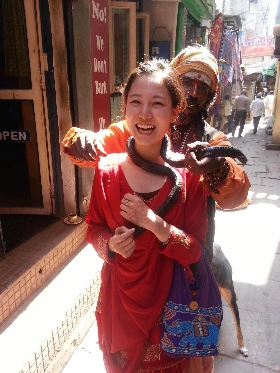 길을 가다 코브라를 상자에 넣고 다니며 호객행위를 하는 아저씨를 만나면 못 이기는 척 몇 루피를 건네고 사진을 찍었다. 라씨 가게 아저씨가 하루 장사할 요거트를 개시하자마자 소 한 마리가 큰 혀로 한입 핥는 웃지 못할 광경을 마주치기도했다. 아저씨는 힌두교도라면 누구나 신성시한다는 소를 거침없이 손으로 내리쳤고 주변 사람들은 웃음을 겨우 참으면서 아저씨를 말렸다. 아저씨가 그 부분만 살짝 걷어내고 요거트를 계속 팔았다는 소소한 비밀도 알게 되었다. 그러면서도 그 라씨를 한 잔 사들고 또 골목을 누비는 것이 나의 낙이었다.