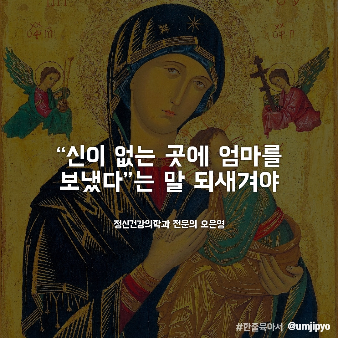 눈앞에서 자동차가 내 아이를 덮치는 상황이 벌어졌다고 치자. 어떻게 하겠는가. 아마 0.1초도 생각지 않고 바로 뛰어들 것이다. 아이를 잘 달래지 못하는 엄마도, 골고루 먹이지 못하는 엄마도, 매일 짜증육아를 일삼는 엄마도 모두 반사적으로 몸을 던질 것이다. 만약 그때 다치거나 죽게 된다면, 그 순간을 원망하고 후회할까. 아마 다시 그런 상황이 벌어진다고 해도 똑같은 선택을 할 것이다. 엄마는 그런 사람이다.