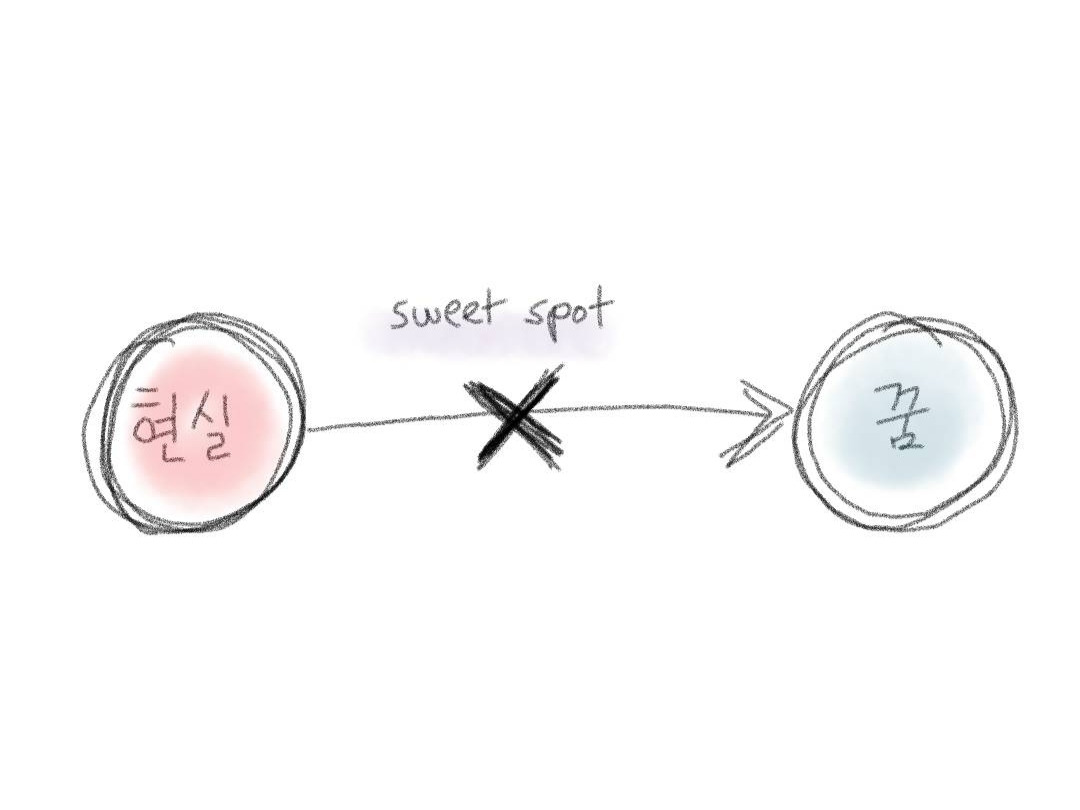 내가 지금 가야 할 지점, 현실과 꿈 그 어디 중간쯤. 그 스윗 스팟을 찾는 여정을 지금부터 해보련다.