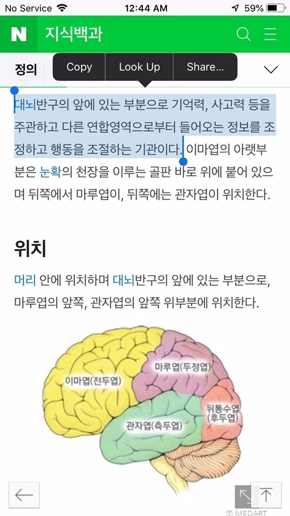 전두엽 간단 설명. 출처 : 네이버 지식백과
