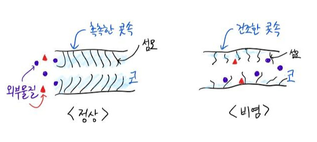 코 안쪽이 말라 건조해지면 코속 섬모운동이 안 좋아지고 점막이 얇아지면서 우리 몸을 지키는 1차 방어선이 무너지게 된다. 알러지원이나 바이러스 접근이 훠얼씬 용이해진다는 말이다. 특히 요즘처럼 추운 계절에는 난방으로 공기가 매우 건조하다. 평소 비염이 있다면 식염수 성분의 코스프레이를 틈틈히 뿌려주어도 좋다. 코 속이 촉촉해지면 자극을 덜 받게 되고 코속 찌꺼기도 잘 배출되게 되어 비염이 덜 생기게 된다.