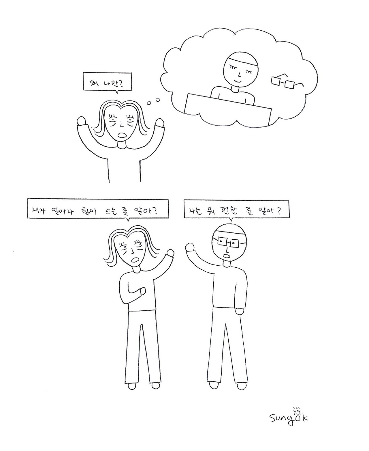 그리고 그런 것들이 주중에 내 안에 점점 쌓이게 되면, 결국 나는 주말에 남편과 부딪히게 되었다.