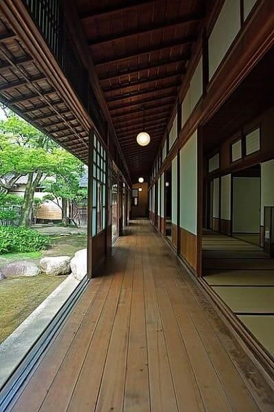 일본가옥의 내·외관은 안과 밖을 두 개의 다른 환경으로 생각하지 않고 연결된 부분으로 본 전통적 건축특징을 보여준다. 이러한 생각은 안에서 밖으로 가고 있는 중간적 공간인 베란다(엔가와-緣側)에서 나타난다. 집의 가장자리에 붙어있어서 비가 오면 젖는 ‘누레엔’(濡れ緣)은 ‘엔가와’의 한 형태이다.