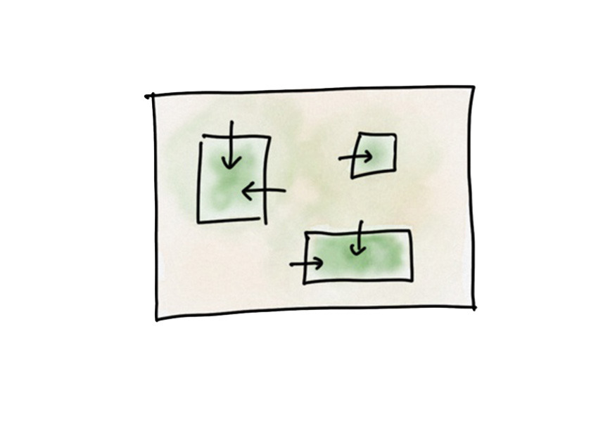 이와 같이 토의 공간을 단순히 주거공간에서 활용하는 것뿐만 아니라 랜드스케이프(landscape)를 이용해 땅, 대지와 조화를 이루는 공간디자인 방식도 경험자의 체험에 밀접하게 작용을 할 수 있다.