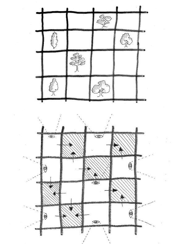 팔마이라 바닷가의 레카 수영장에서 방문자는 해변에 진입하는 동안 계속 본 바다와 탈의실에 들어가기 직전에 잠깐 보는 바다, 긴 통로를 지난 후에 보는 바다를 불연속적으로 경험하게 된다. 세 개의 노드는 해안선에 나란한 방향으로의 이동으로 나누어져 있으며 이 과정에서 시각적 은폐가 있다. 처음과 마지막 노드 사이에 딱 한 순간, 건축이라는 프레임에 들어온 바다를 시각적으로 경험하며 이 시점은 진행 축이 바뀐다는 점이다. 노드 사이의 이동은 시각적 불연속과 함께 시간적 불연속이 존재하며, 이 불연속 사이에 한 번의 충격적이고 제한적인 장면을 통해 인식한 바다와 계속해서 청각을 통해 지각하는 바다에 의해 내면에 존재하는 온갖 기억들이 연상되고 재구성되어 바다라는 대상에 대한 감정이 고양된다.