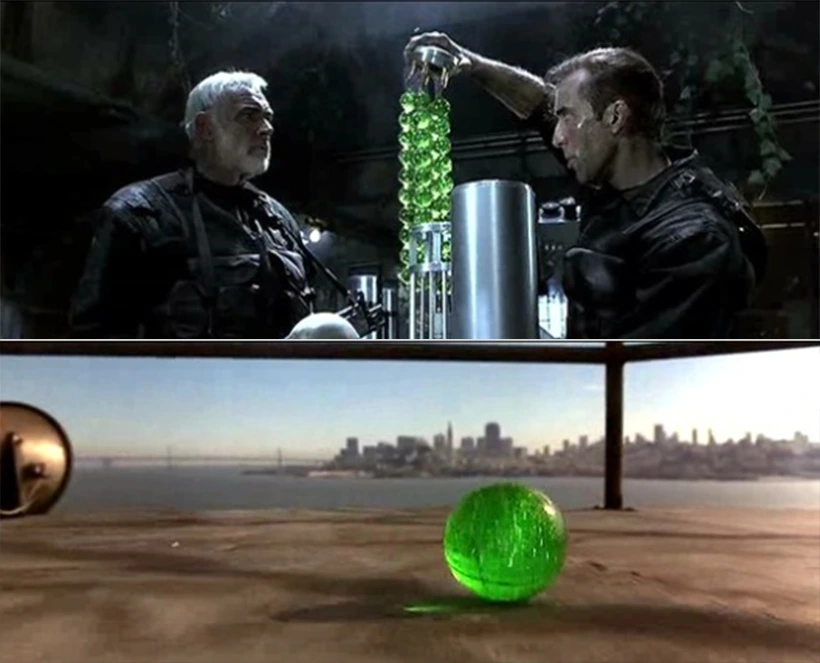 먹음직스러운 초록색 구슬로 표현된 VX 가스는 이후 대중매체에서 생화학 무기를 형상화하는 전형이 되었다. 이 영화가 남긴 이미지의 힘을 보여주는 사례다.