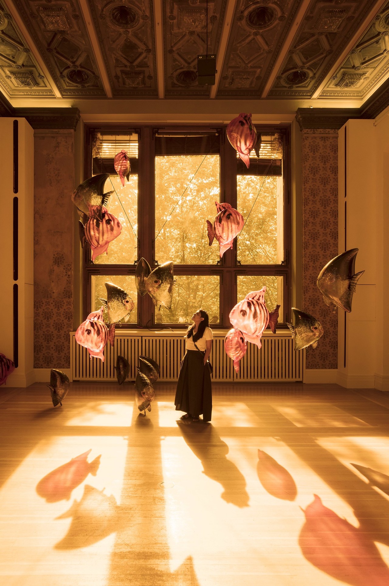 물고기는 때로는 사람보다 낮게, 때로는 높게 유유히 공기 속을 헤엄친다. 어떠한 경계도 없이 한 공간에 위치한 관람객과 물고기는 새로운 관계를 맺게된다.