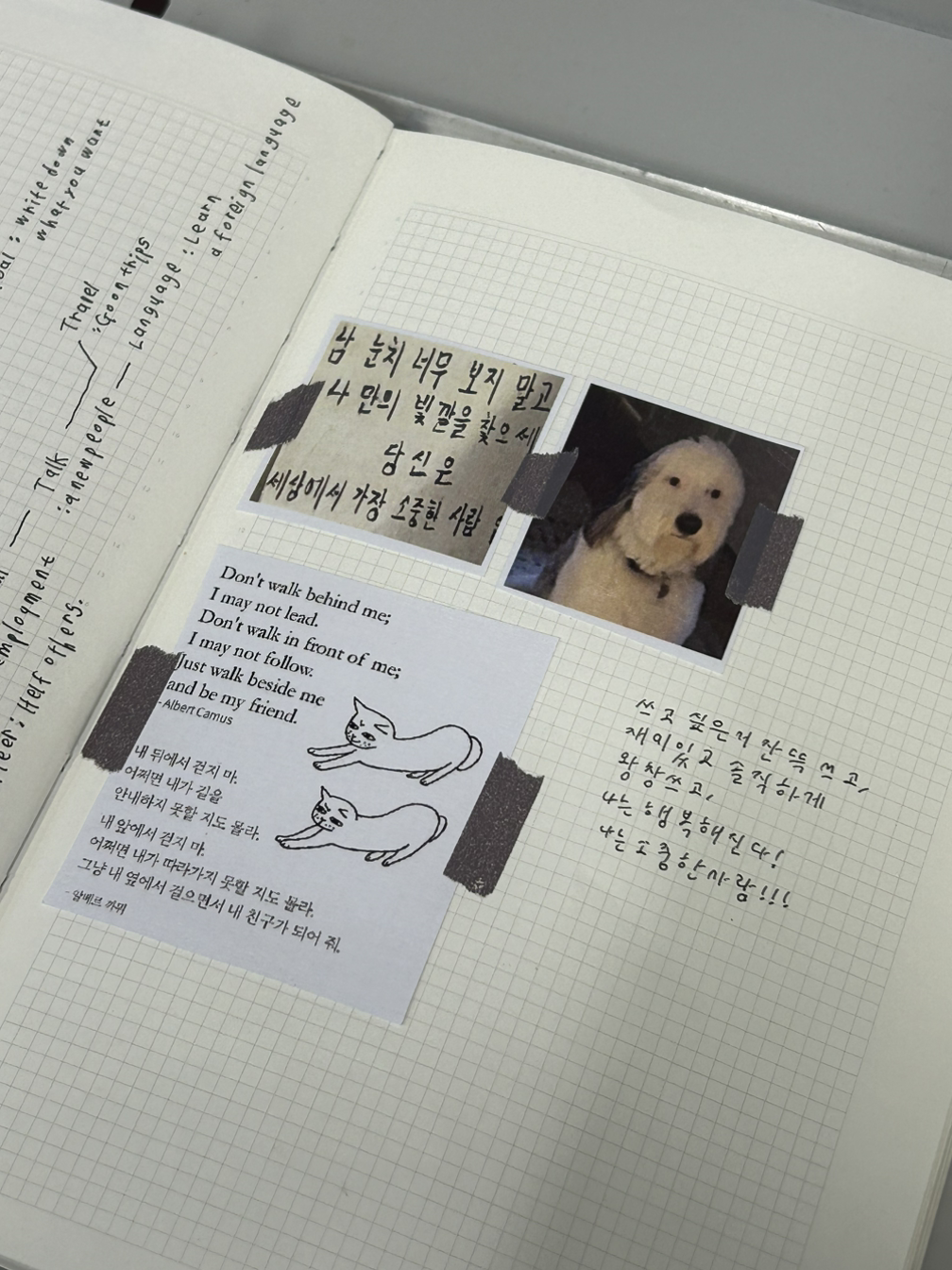그래도 지금의 행복을 미래로 미루지 않은 것은 잘한 것 같다. 내가 거창한 것보다도 소소한 행복을 잘 느낄 줄 아는 사람이라 좋았다. 때론 노트 하나, 연필 하나, 사진 한 장, 말 한마디에 행복해지는 사람이라 지금까지의 삶도 충분히 충만했다. 마음의 중심을 잡으려 부단히 노력해 줘서 고맙다.