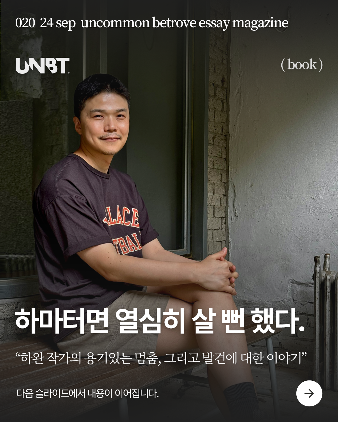 앞만 보며, 달려가는 현실에 지쳐가고 있다면 하완 작가의 에세이, 그리고 언비트와 나눈 짧은 대화를 통해 조금이나마 용기를 얻으실 수 있길 바랍니다.