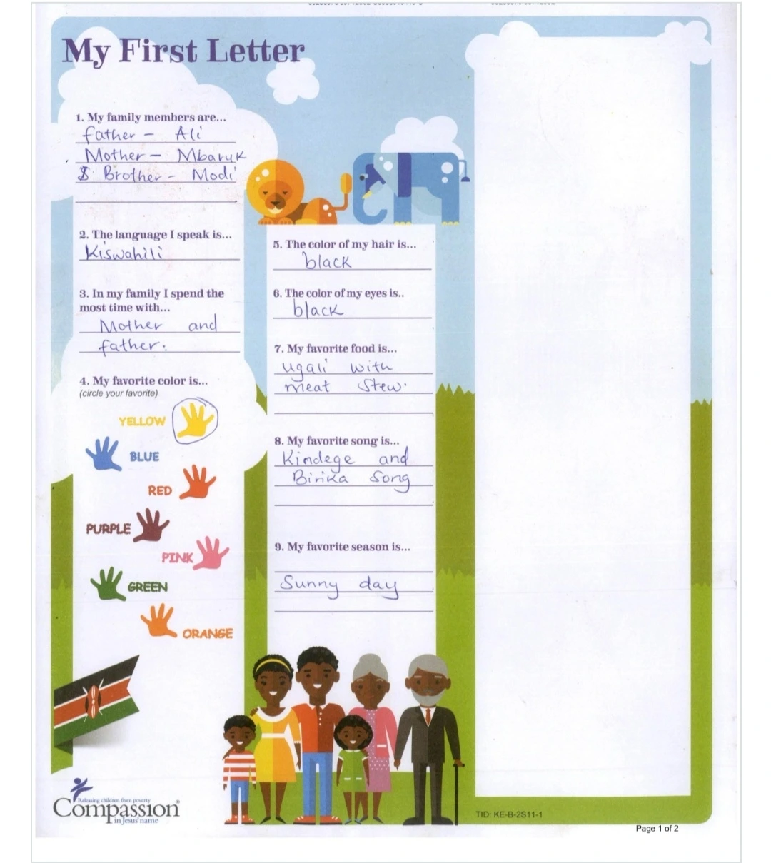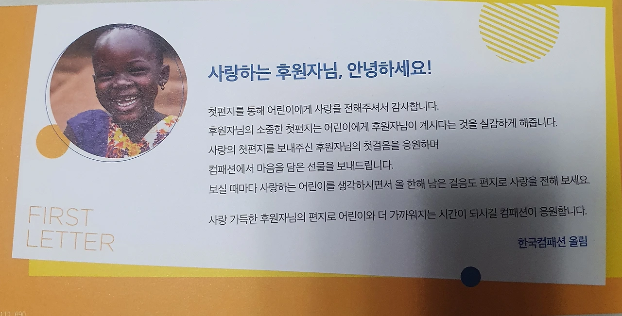 아이에게서 감사의 편지가 오고 사진도 온다. 그럴 때마다