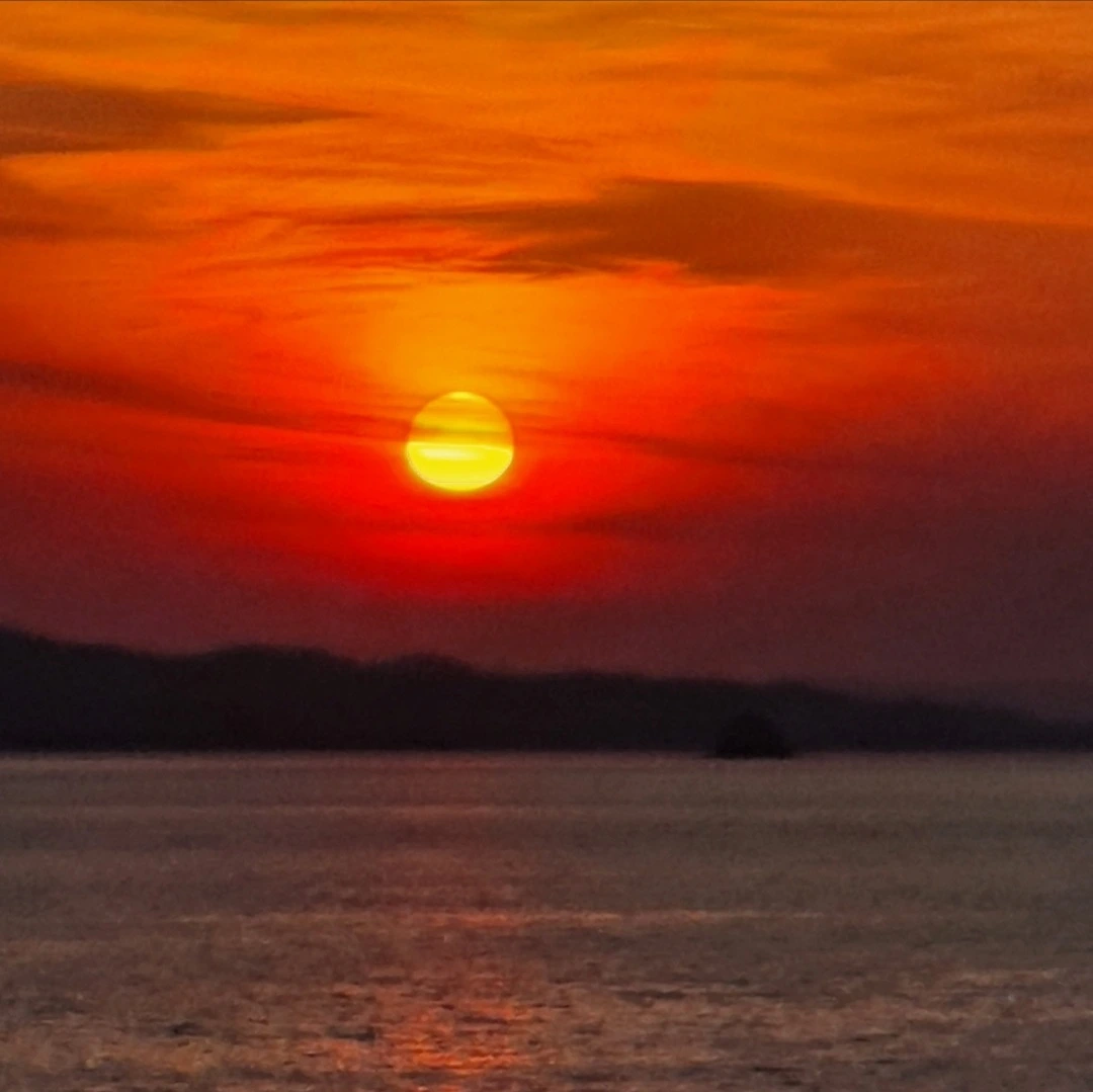 해가 떨어지는 수평선 너머로 붉은 석양이 물들어 옵니다.