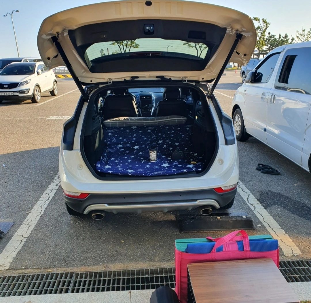 그리고는 음악을 잔잔하게 틀고 항상 차에 준비해 다니는 조금 큰 무릎담요를 트렁크에 깔고 누웠습니다.