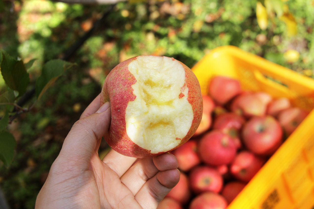 후지(부사)는 보통 10월 하순 첫서리가 내리기 시작하면서 수확을 해서 저장고에 보관하여 그다음 해 여름 쓰가루(아오리)가 나오기 전까지 우리가 먹는 사과로 사과 전체 생산량의 50%를 넘게 차지합니다. 일 년의 절반 이상 동안이나 우리가 먹는 국민 사과랍니다. 꿀심박힌 사과가 그렇지 않은 사과보다 저장 기간이 길지 않다고 말씀드린 것은 하루나 일주일처럼 짧은 기간이 아닌 몇 달을 말씀드리는 것이오니 크게 걱정하지 않으셔도 됩니다. 사과 농부의 입장에서는 사과에 밀이 많으면 오랜 기간 판매를 할 수 없어서 빨리 판매를 끝내야 한다는 부담은 있지만 소비자 입장에서는 신경 쓸 부분은 아닙니다.