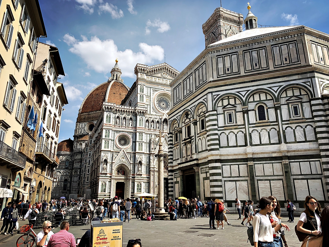 점심을 먹고 향한 우리의 첫 번째 목적지는 두오모다. 숙소에서 두모오 성당까지 걸어서 10분이 채 걸리지 않는다. 피렌체는 로마에 비해 전체적으로 작다. 어딜 가나 그냥 걸어 다녀도 멀지 않다. 우리가 두오모 성당으로 알고 있는 이 성당의 정식 명칭은 '산타 마리아 델 피오레 대성당(Santa Maria del Fiore)이다.