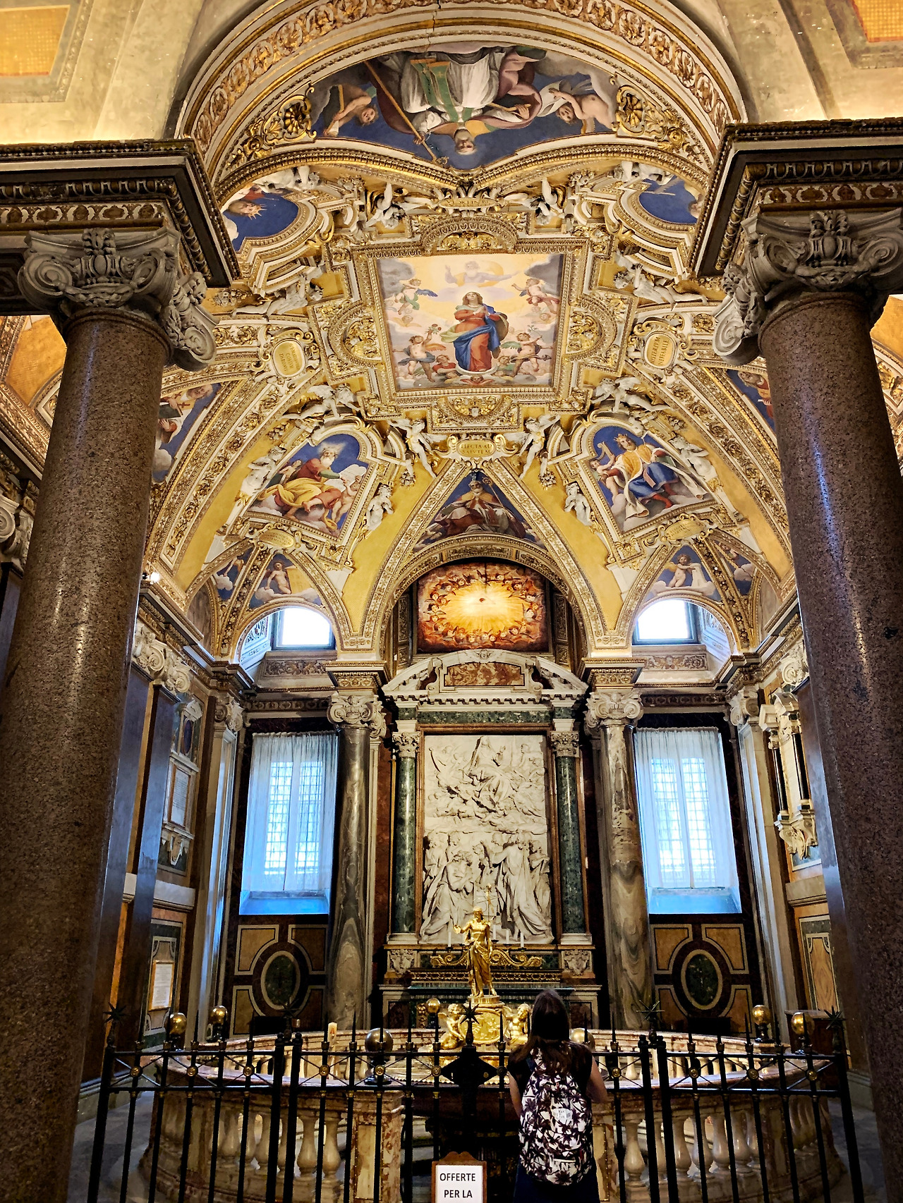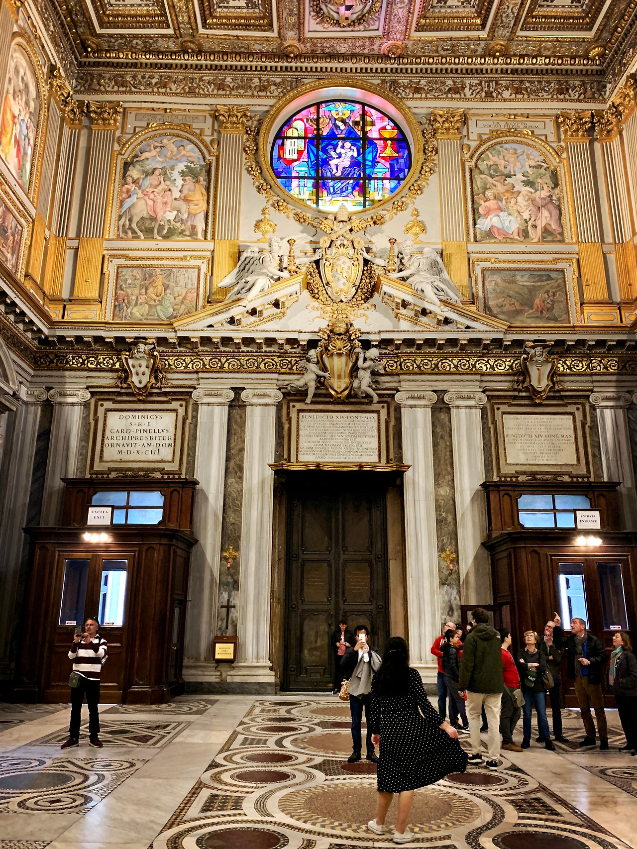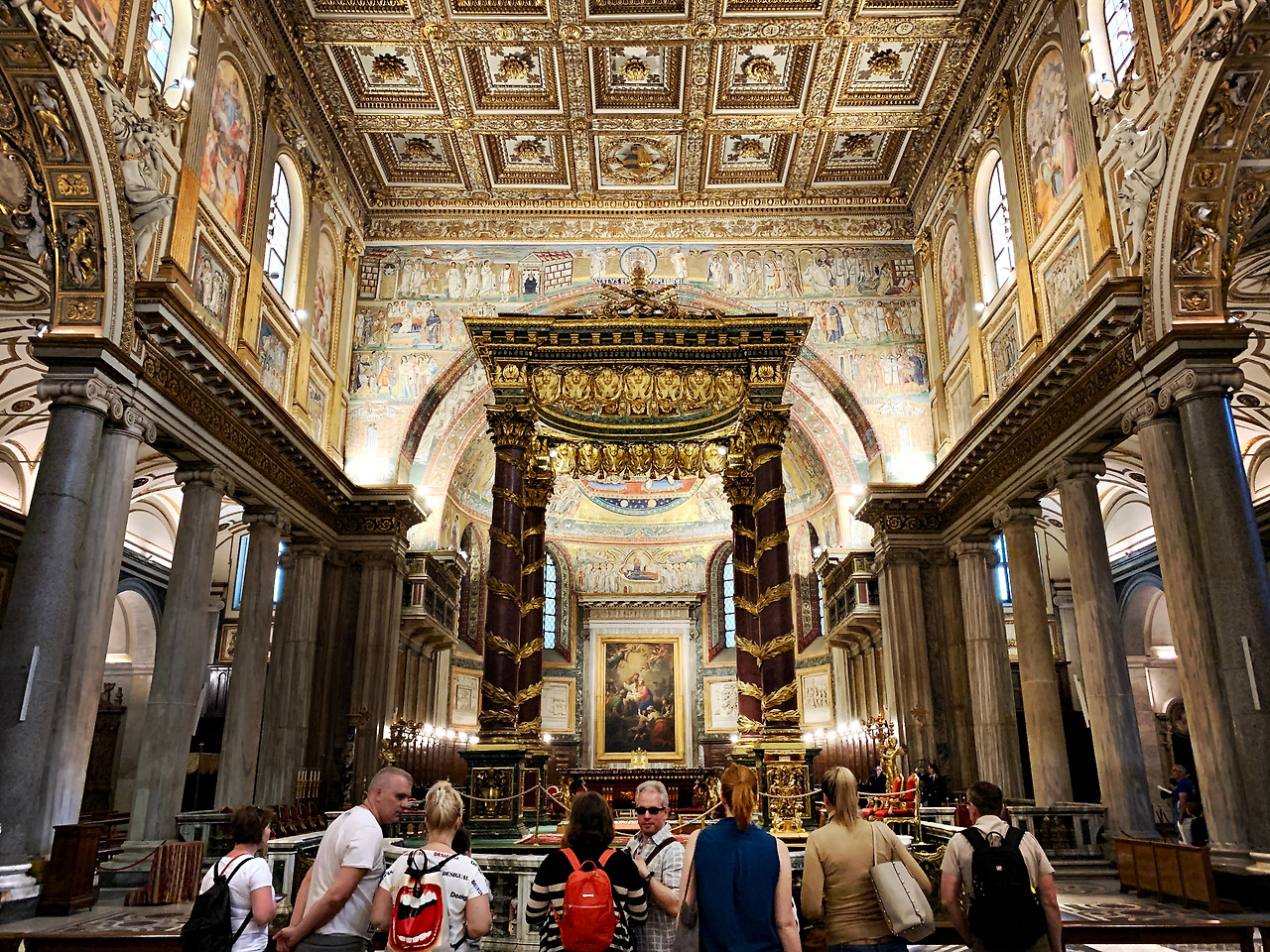 보안검색까지 해야 들어갈 수 있는 성당으로 로마에서도 꽤 큰 성당이다. 천장화를 비롯 온 성당이 금빛 찬란.
