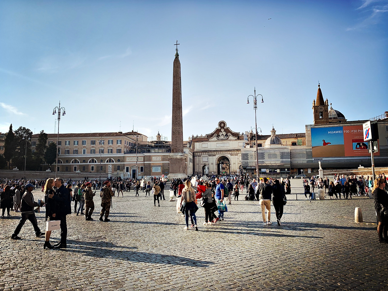 스페인 광장에서 걸어서 5분 거리에 있는 포폴로 광장(Piazza Popolo)은 규모가 꽤 컸다. 상대적으로 작은 스페인 광장에서 있다가 와서 그런지 더 크게 느껴졌다. 사람들은 많았지만 광장의 규모가 크다 보니 북적북적하게 느껴지지는 않았다. 기분 좋은 번잡함이라고 표현하면 좋을 것 같다.