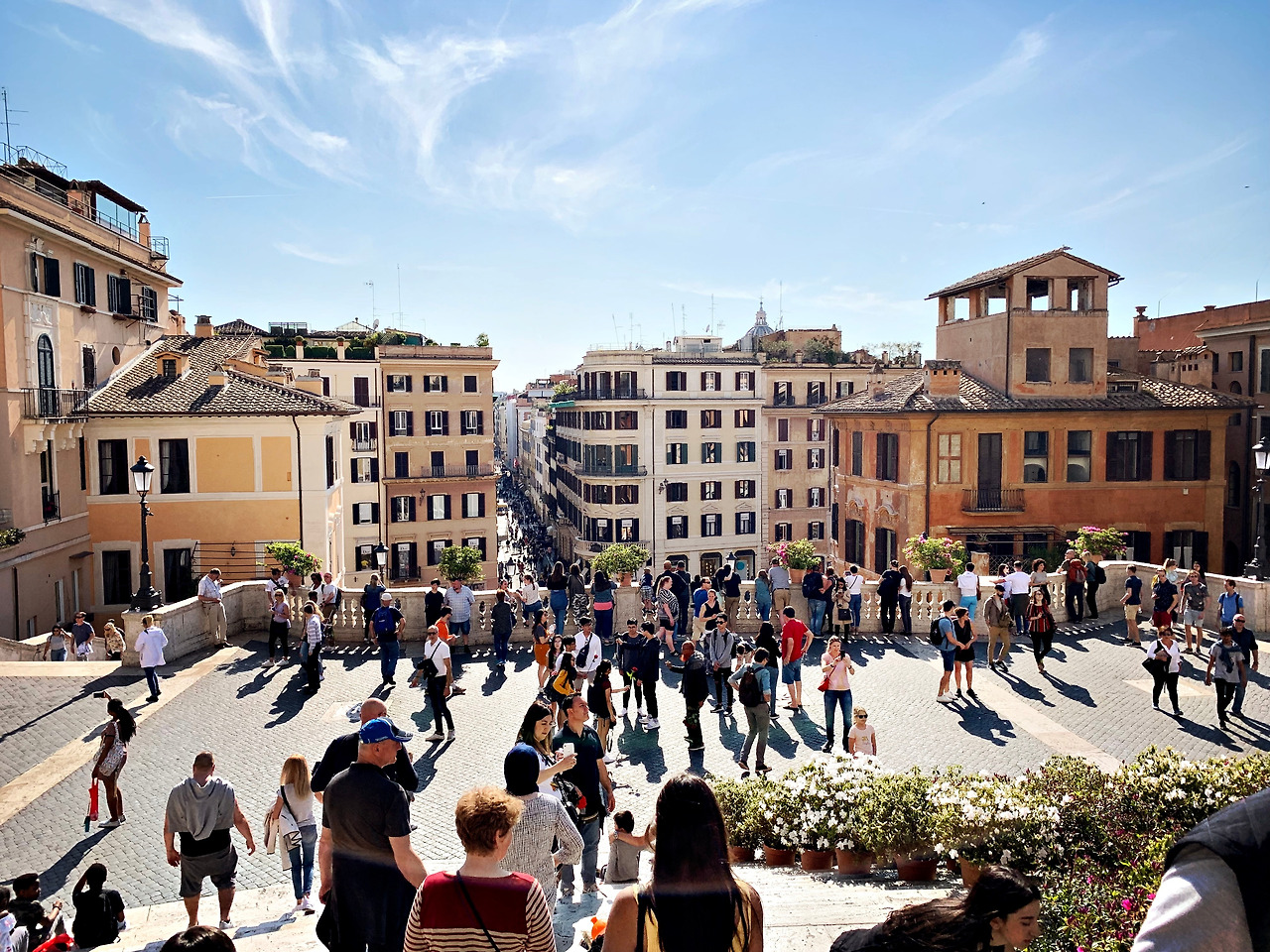 스페인 광장은 도떼기시장. 규모가 작아서 더 그렇게 느껴지기도 한다. 그런데 한편으로 생각해보면 광장이라는 것이 사람들로 가득해야 광장의 맛이 나는 것 아니겠는가? 트레비 분수는 아침 일찍 가서 조용하게 분수 소리를 듣는 것을 추천한다면 스페인 광장에는 사람 많을 때 가는 것이 더 낫겠다 싶다. 이 곳에서 아이스크림을 먹는 것은 오드리 헵번의 전유물로 남기고 싶다.