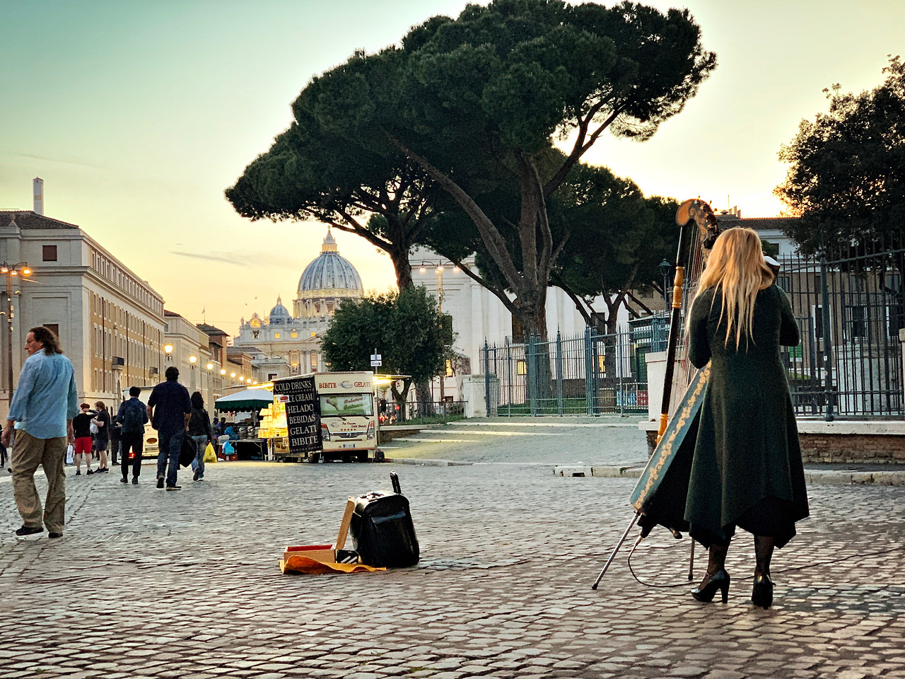 하프를 연주하는 거리의 악사가 우리의 로마에서 마지막 날의 아쉬움을 위로라도 하듯 촉촉한 갬성으로 우리에게 작별을 고했다.