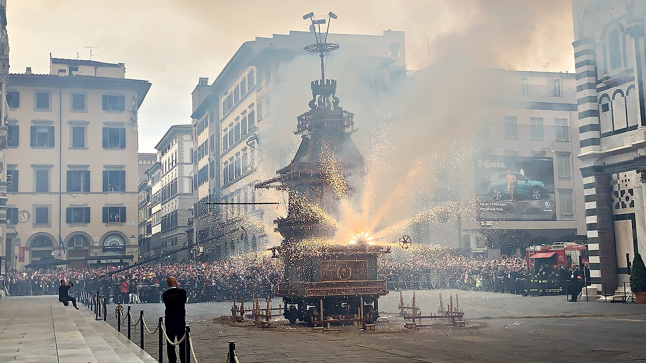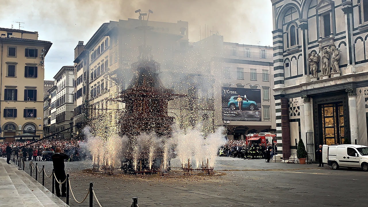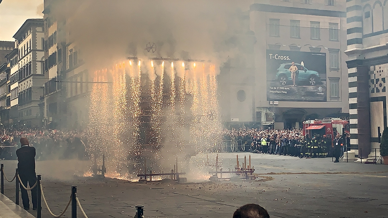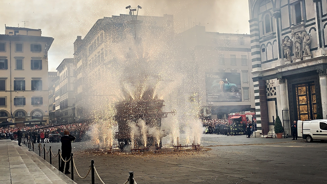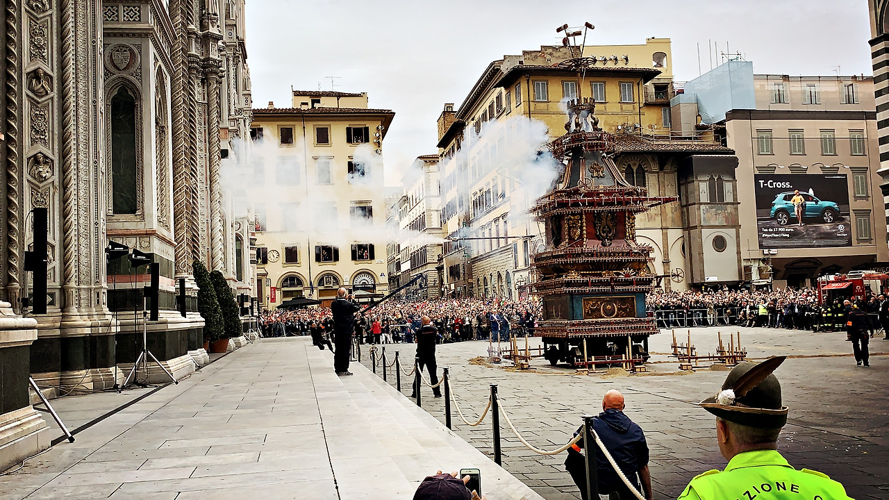이어서 부활절 불꽃놀이 스코피오 델 카로(Scoppio del Carro)를 시작하였다. 엄밀히 말하면 폭죽놀이에 가까운에 정말 대포가 터지는듯한 큰 소리를 내며 폭죽이 20분 가까이 터지기 시작하는데 장관이었다. 부활절에 피렌체에서 볼 수 있는 최고의 볼거리를 선물로 받은 기분이었다.