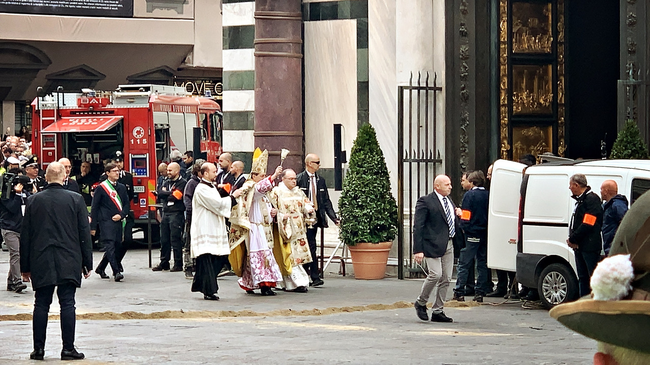 두오모 근처로 가니 벌써부터 부활절 행사 준비로 경찰들이 펜스를 치는 작업을 하고 있었다. 거리의 사람들은 거의 없었다. 로마에서도 그랬지만 북적북적한 관광지를 여유 있게 보고 싶다면 아침 일찍 가는 것이 참 좋다.