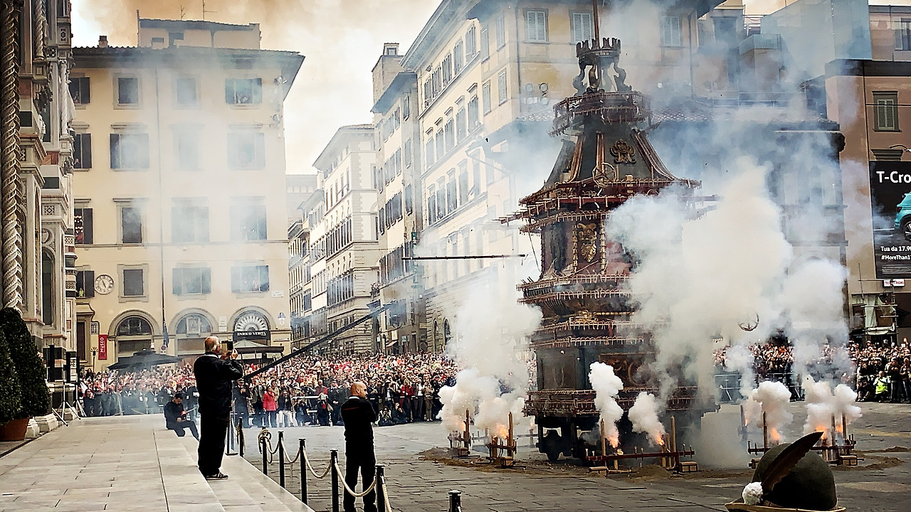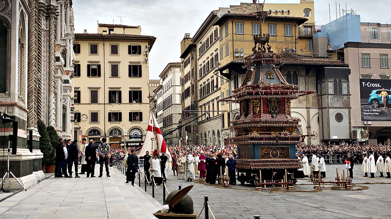 피렌체에서는 해마다 산타마리아 델 피오레 성당 앞에서 피렌체 부활절 불꽃놀이 스코피오 델 카로(Scoppio del Carro)를 하는 행사가 유명하다고 한다. 사람들이 너무 많이 몰리는 그런 곳을 그리 좋아하지 않는 성격에 신자도 아닌 탓에 부활절이 나와는 무슨 관계인가 싶기도 했지만 그래도 부활절을 피렌체에서 보내는 최고의 볼거리를 놓치고 싶지는 않았다. 한국에서 했으면 절대 안 갔을 텐데 말이다.