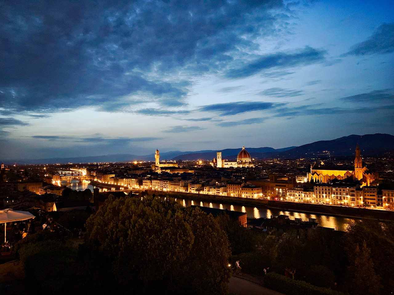 여기는 보통 8시 정도부터 해가 지기 시작하는 것 같아서 7시 30분 정도부터 미켈란젤로 광장에서 기다리고 있었다. 로마에서보다는 해가 조금 늦게 지는지 8시 20분 정도가 지나서야 야경 같은 느낌이 들기 시작했다. 어느덧 해는 저물고 작은 불빛들이 도시 전체를 수놓았다. 밤에 보는 피렌체의 모습은 더 아름다웠다.