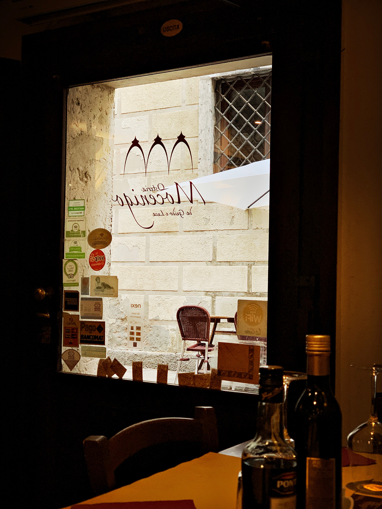 점심은 무라노 섬 야외 식당에서 마르게리따로 간단히 해결하고 우리는 무라노를 빠져나왔다. 숙소에서 잠시 쉬다 어제 가서 허탕을 치고 온 식당이 아른거렸다. 조용한 골목의 느낌과 가게의 분위기가 이 곳은 진짜라는 확신이 있었다. 그래서 다시 도전해보고 싶은 오기가 생겼다. 이탈리아에서의 마지막 저녁을 이곳에서 마무리해도 좋을 것 같은 느낌적인 느낌.