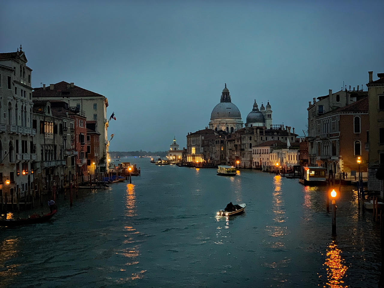 해가 뜨는 것도 순식간이지만 짙은색의 파란 하늘에서 보랏빛 검정 하늘로 바뀌는 것도 순식간이다. 불과 10분 사이에 베네치아의 모습은 이렇게 변해있었다.