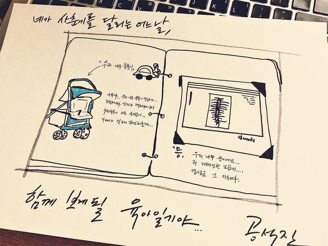 큰 아이가 엄마 뱃속에 있을 때 나는 그 과정을 꼭 기록으로 남기고 싶었고, 부족하지만 실행에 옮겼다. 육아 일기까지는 아니지만 병원에서 녀석의 초음파 사진을 받아온 날이면 그날의 느낌을 사진과 함께 간단히 기록해두었다. 아이가 커서 나중에 사춘기가 되었을 때 보여줄 요량으로 만들어 놓은 아빠표 일기였는데 엄마 아빠가 널 이렇게 아끼고 사랑했었다. 너는 이런 축복 속에 태어난 소중한 사람이라는 것을 녀석이 이 노트를 보고 느꼈으면 하는 마음에서였다.