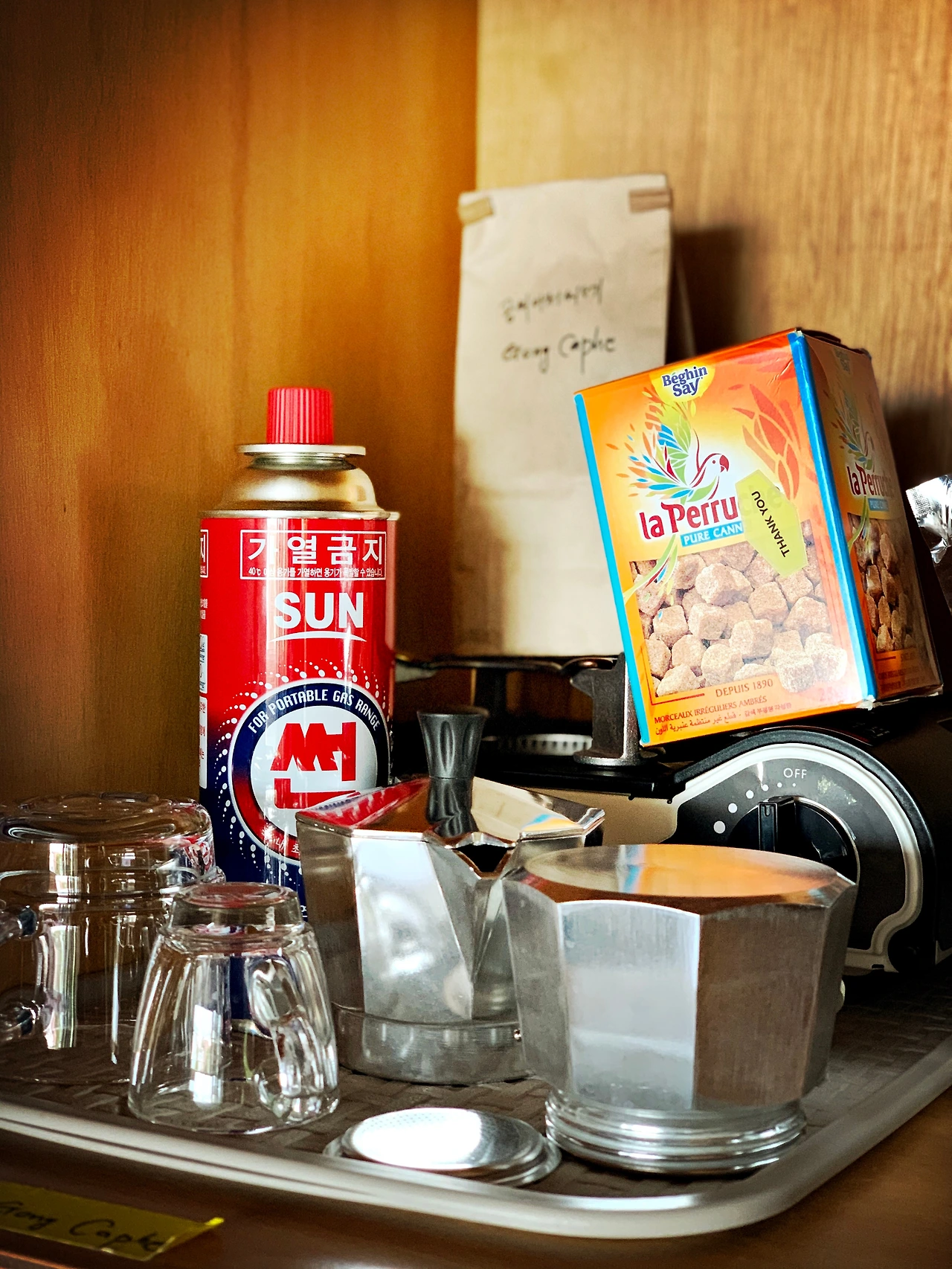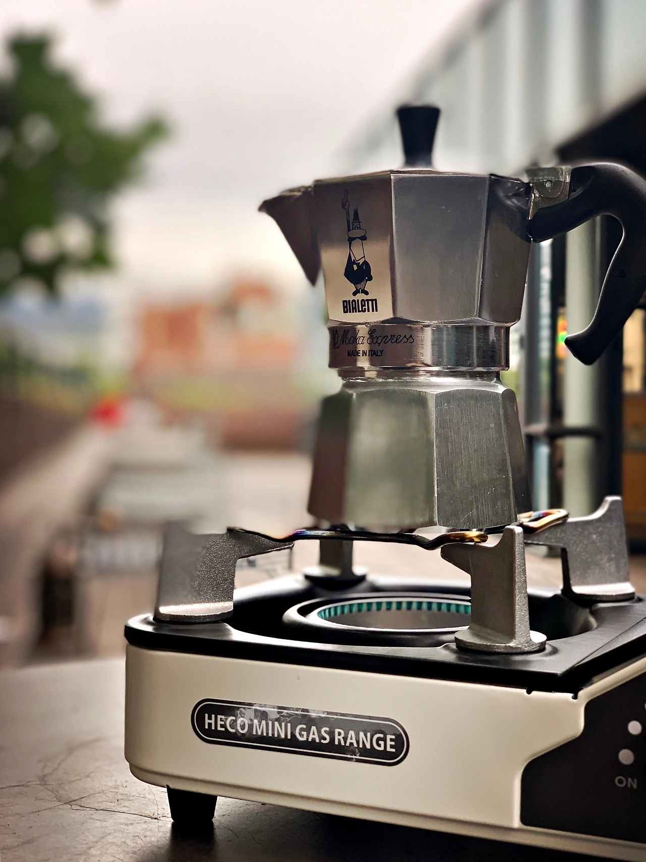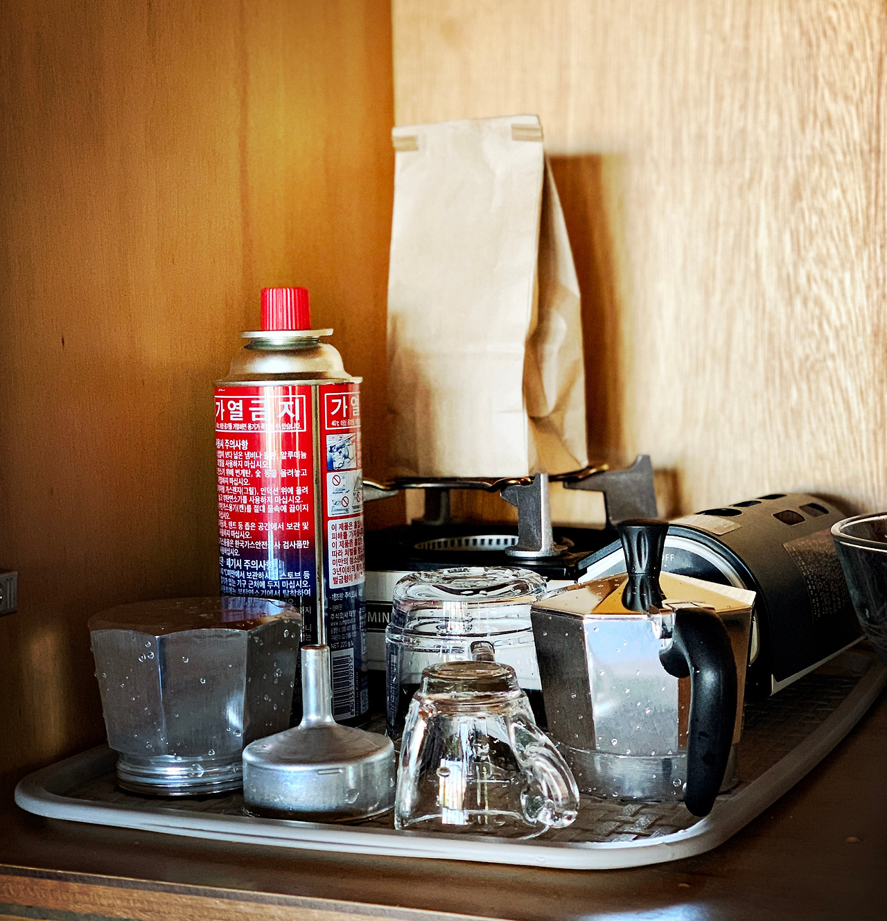 사실 집에서 인덕션 위에서 추출하는 에스프레소보다는 공공그라운드 옥상 야외 데크에서 매일 아침 에스프레소를 내려 먹는 게 훨씬 더 좋겠더라고요. 상상만 해도 막 행복해지더군요. 그래서 휴대용 버너를 하나 사기로 마음먹었습니다. 이때만 해도 배꼽이 커져봤자 배꼽이지 했습니다.