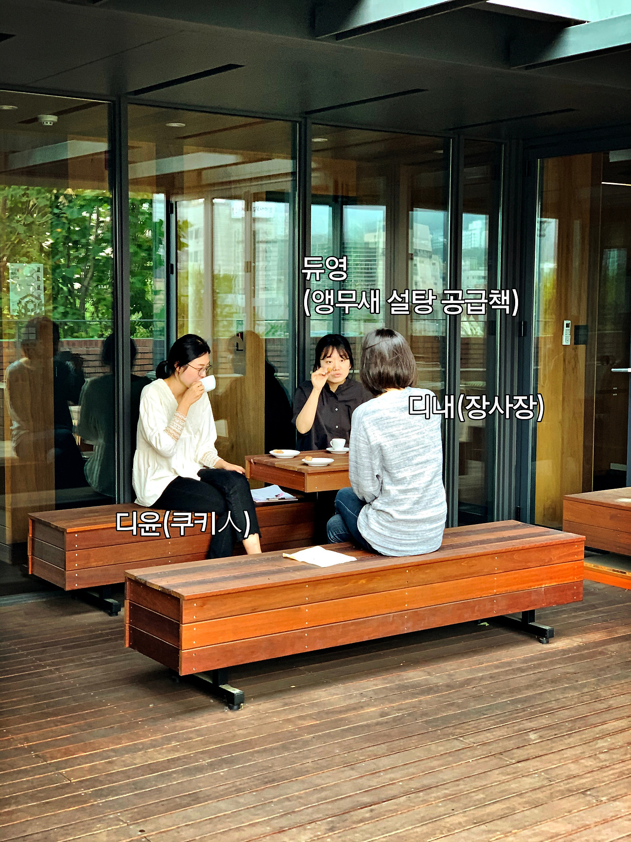 그 3명이 위에서 스포일러 해드린 디내(장사장), 듀영(앵무새 설탕 공급책) 그리고 디윤(쿠키인)입니다. 이 세명의 기획자는 모두 한 회사에 근무하는 직원들입니다. 어찌나 다들 재주가 많은지. 제가 탐내는 인재들입니다. 이런 능력있는 직원들과 함께하는 회사 대표는 얼마나 행복할까요? 부러우면 지는건데 쫌 부럽습니다.