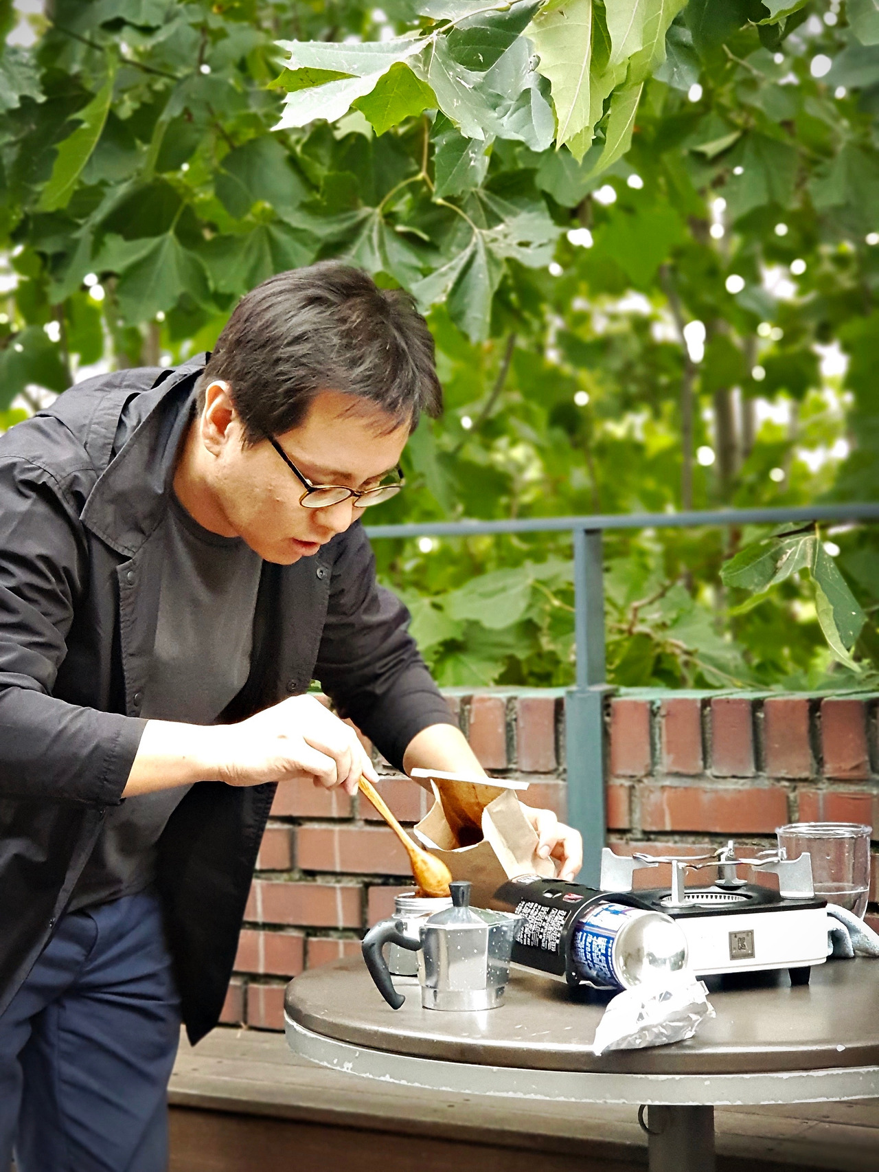 도심 한복판 건물 옥상 데크에서 모카포트로 올려먹는 커피 맛은 일품이었습니다. 일 년 중에 가장 날씨 좋은 요맘때 매일 야외에서 커피 한잔 마실 수 있는 행복은 공공그라운드이기에 가능한 일입니다. 날씨가 조금 더 쌀쌀해지면 커피맛이 더 좋아질 것 같은 느낌적인 느낌으로 공카페가 문을 열었습니다. 자연스럽게 이곳은 카페가 되었고, 장사장님은 동업자가 되었습니다. 이제야 비로소 장사장의 이름이 설명이 되는 대목입니다.
