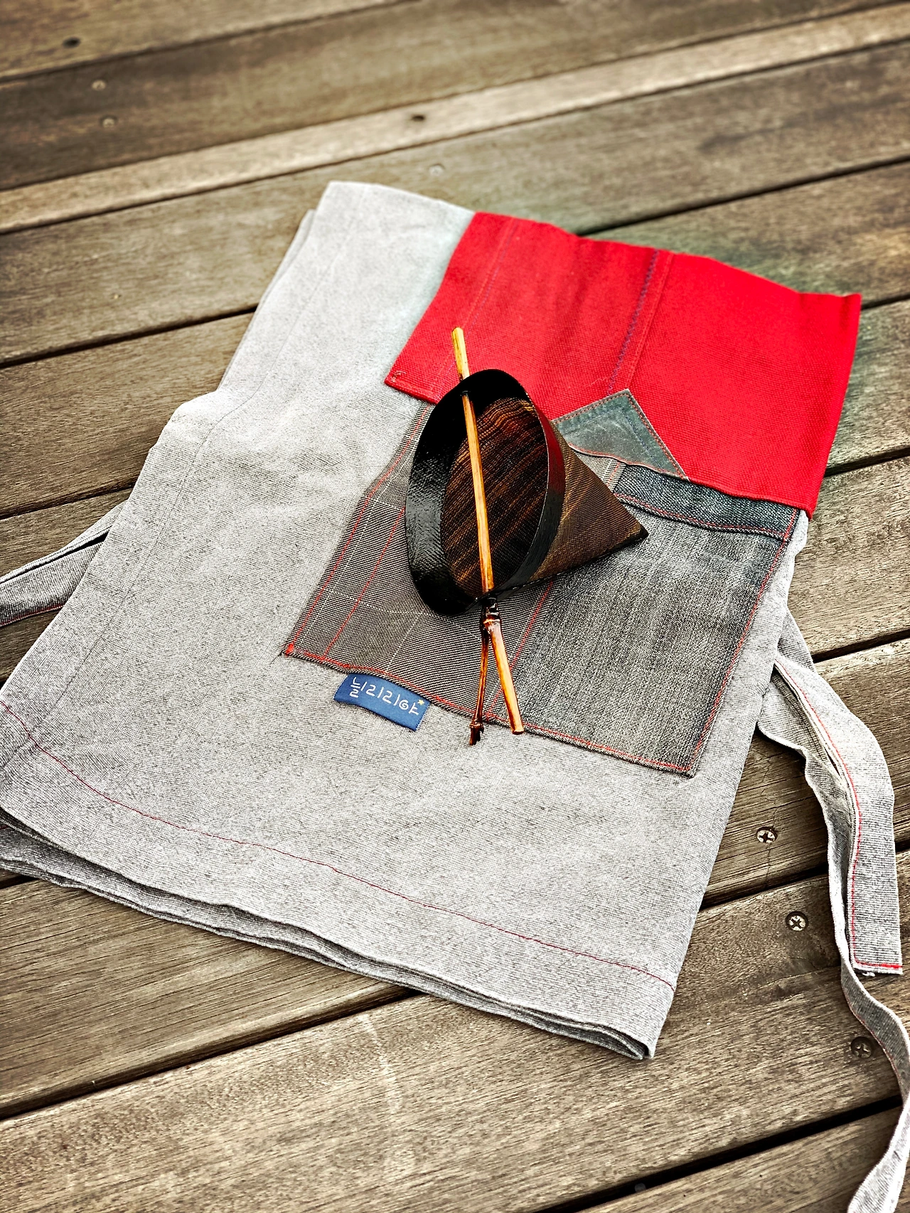 집에서 잠자고 있던 앞치마도 꺼내 들었습니다. 앞치마를 하고 커피를 내리면 뭔가 있어 보입니다. 이 앞치마는 예전에 성북동에서 사무실을 공유하던 재봉의 달인 늴리리야님이 손수 만들어주신 앞치마입니다. 비매품입니다.