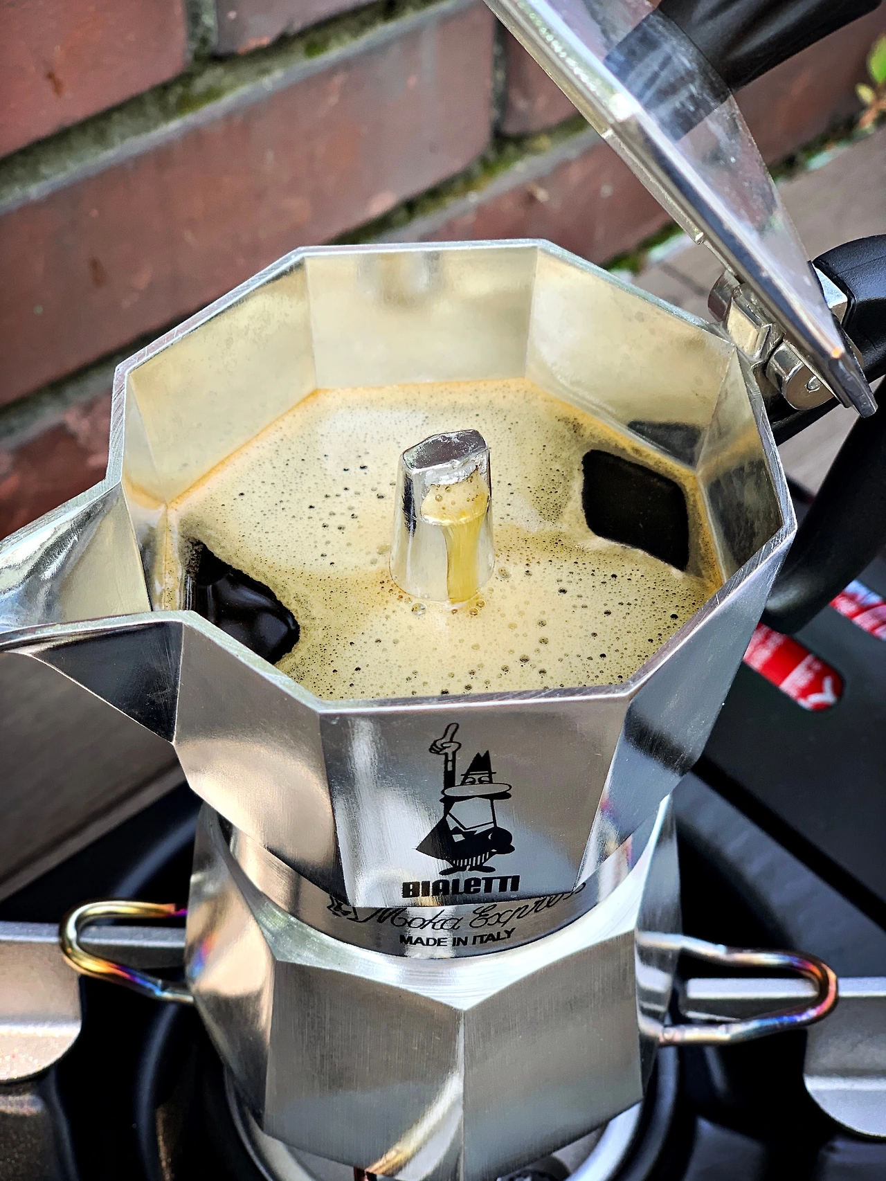 모카포트로 올린 에스프레소가 조금 더 순한 것은 압력에 의한 것이라고 합니다. 보통 카페에 구비되어있는 에스프레소 머신의 압력이 9 bar 이상인데 반해 모카포트는 1~3 bar정도라고 하더라고요. 크레마가 약한 이유도 이 낮은 압력에 있다고 합니다.