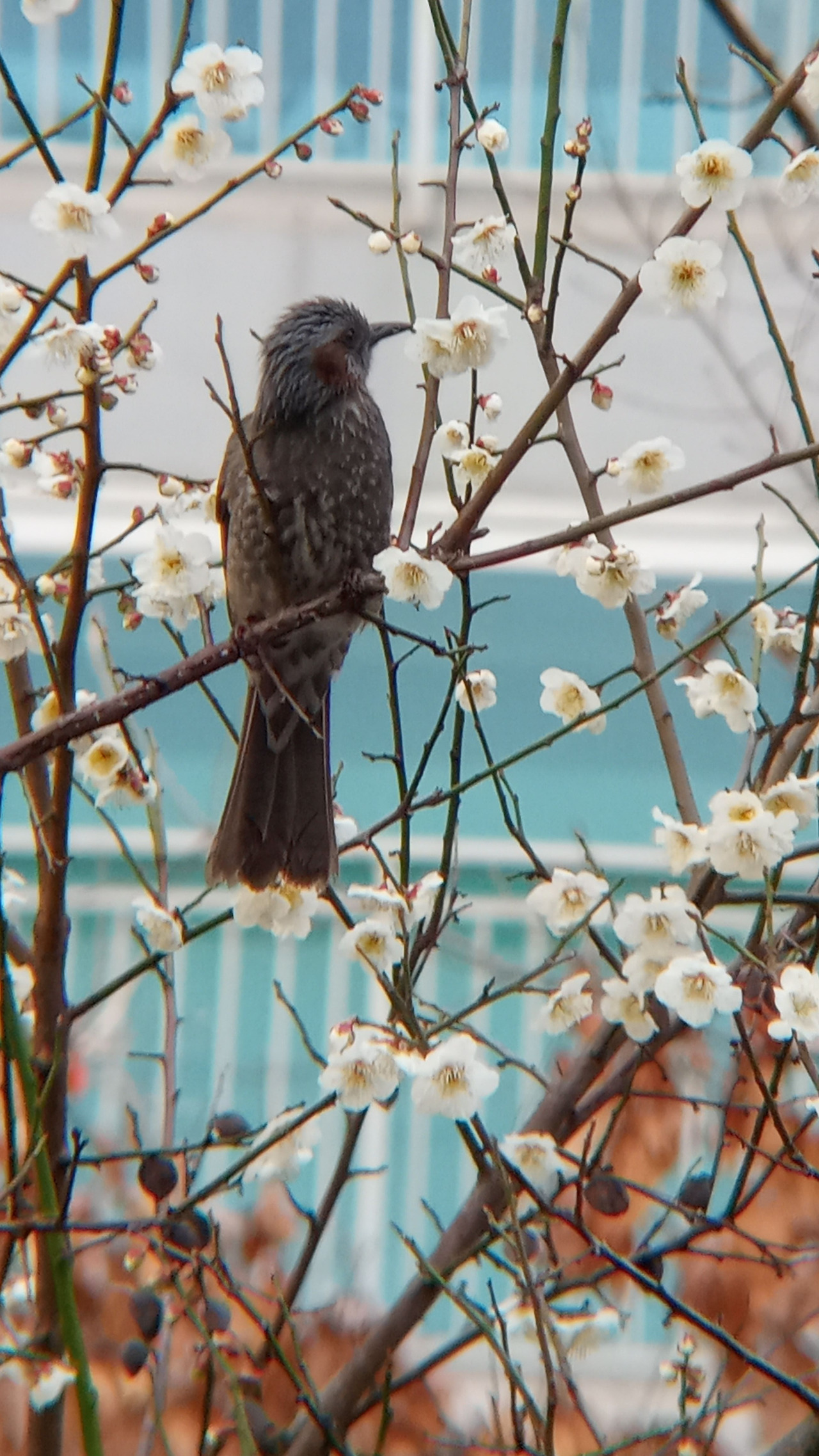 서서히 꽃이 피기 시작하는 날씨 탓에 꽃을 좋아하는 직박구리는 꽃 주변으로 몰려듭니다.