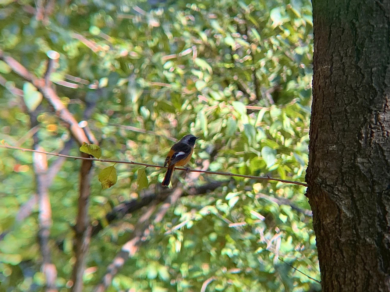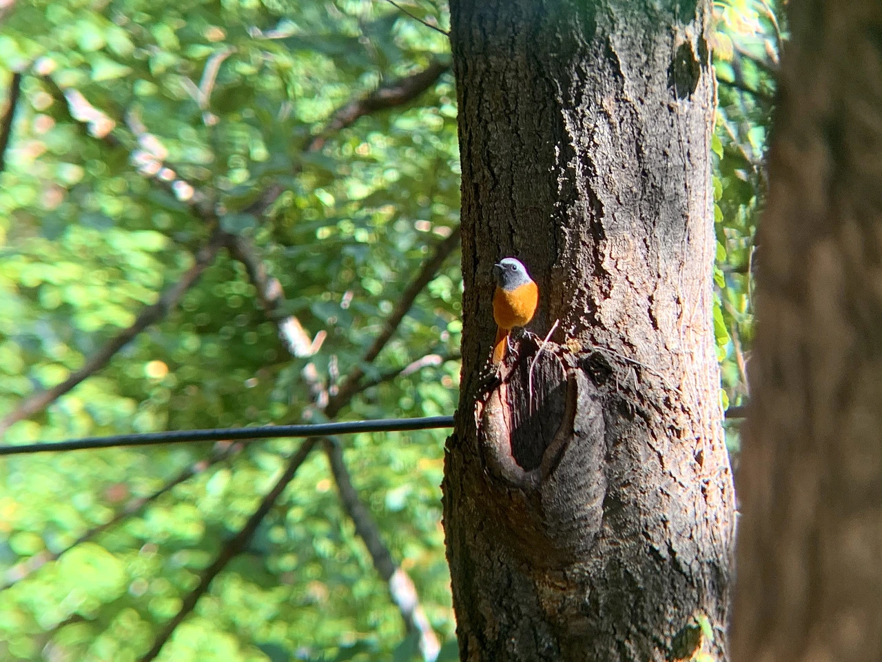 휴대폰을 꺼내서 쌍안경에 대고(디지스코핑이라고 하죠?) 몇 장 찍었습니다. 뒷산에서 볼 수 있는 새 중에서 가장 화려한 컬러를 내는 새 중에 하나일 겁니다. 요 녀석은 딱새 수컷입니다. 사실 전 은은한 암컷의 컬러가 더 좋습니다. 딱새(수컷)의 멋진 패션쇼를 감상하실게요.