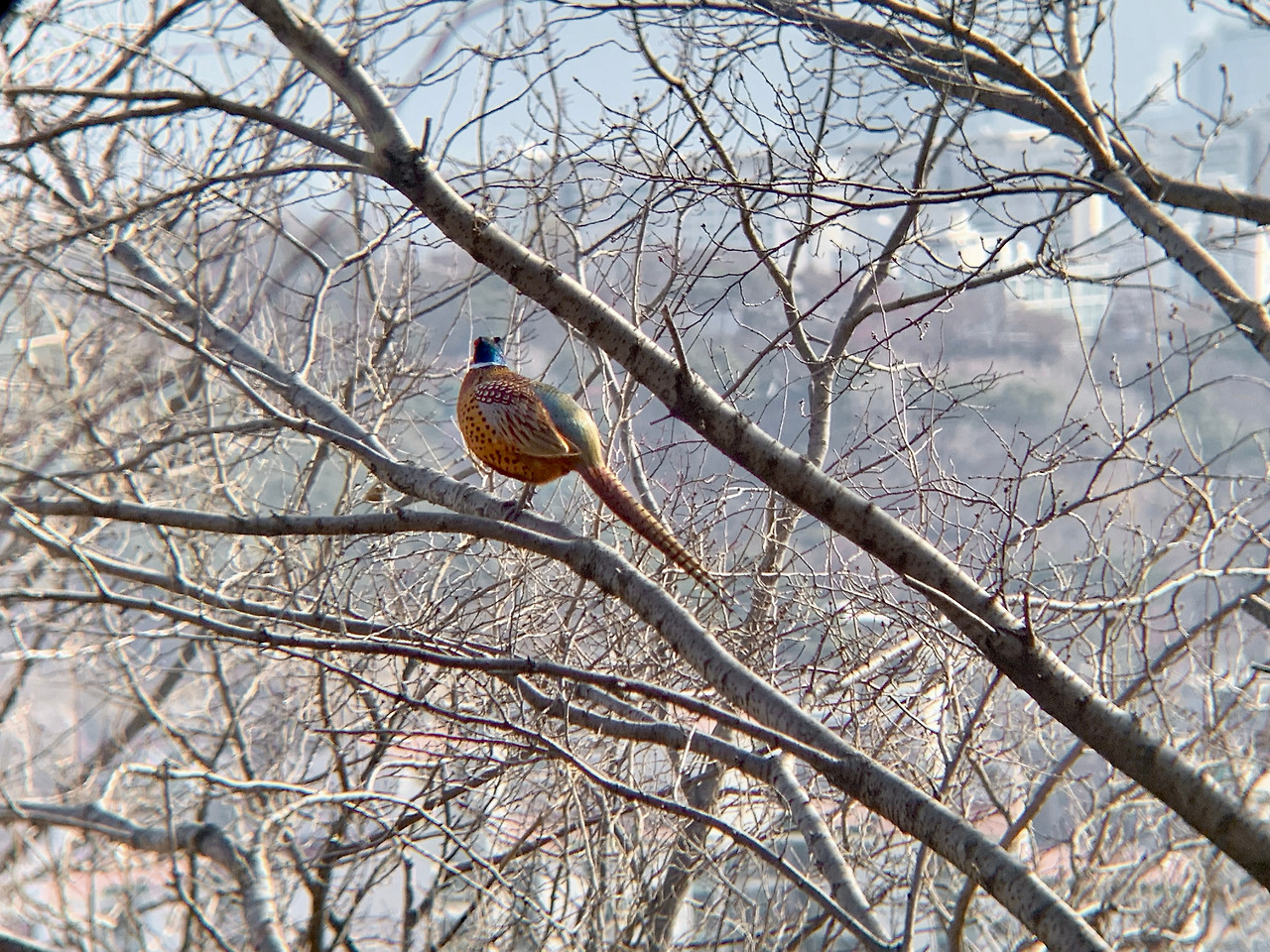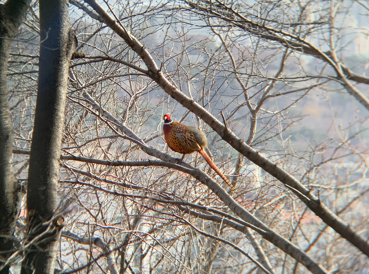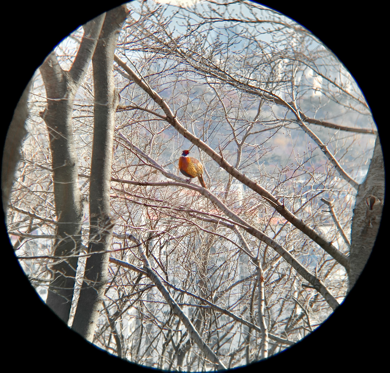 어제 잠시 스쳐 지나가듯 암컷(까투리)을 보긴 했는데 뒷산에서 수컷 꿩(장끼)은 처음입니다.